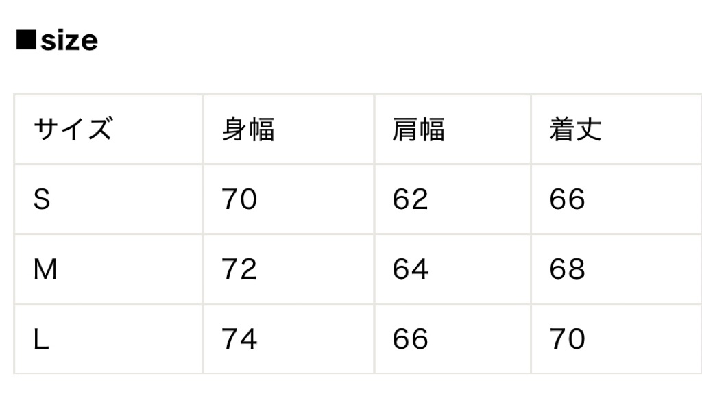 Sサイズ : ~168㎝