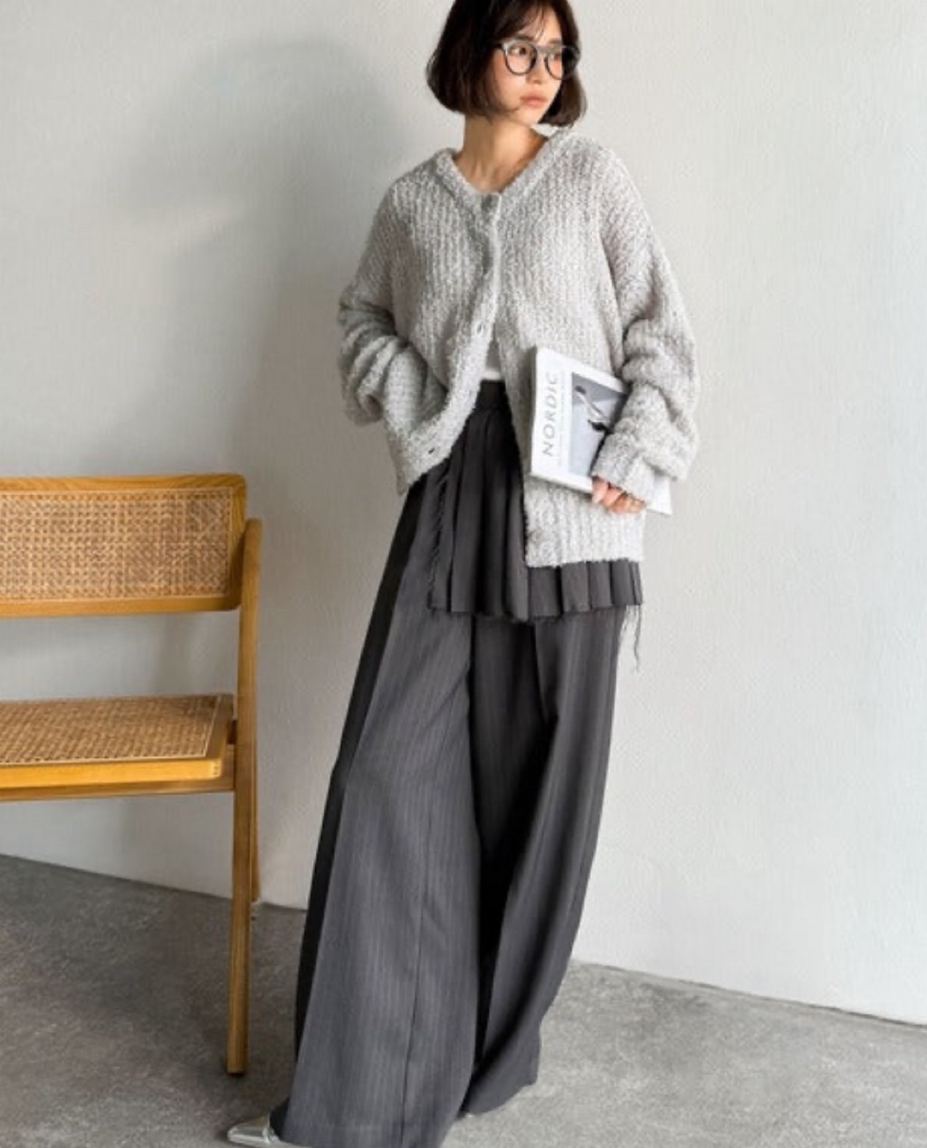 カーディガンとして羽織ったり、ボタンを留めてトップスとしても活用できます♪