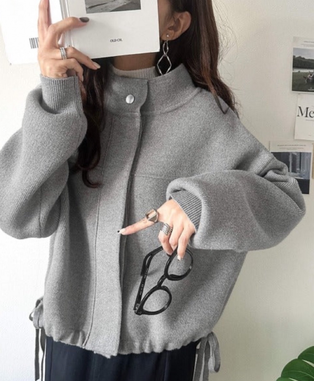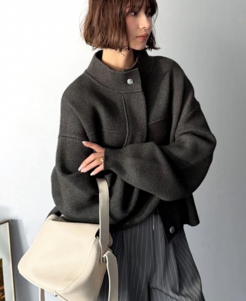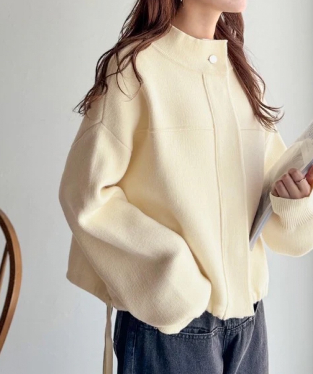 比翼ニットブルゾンは、柔らかいニット素材で作られた軽アウター。