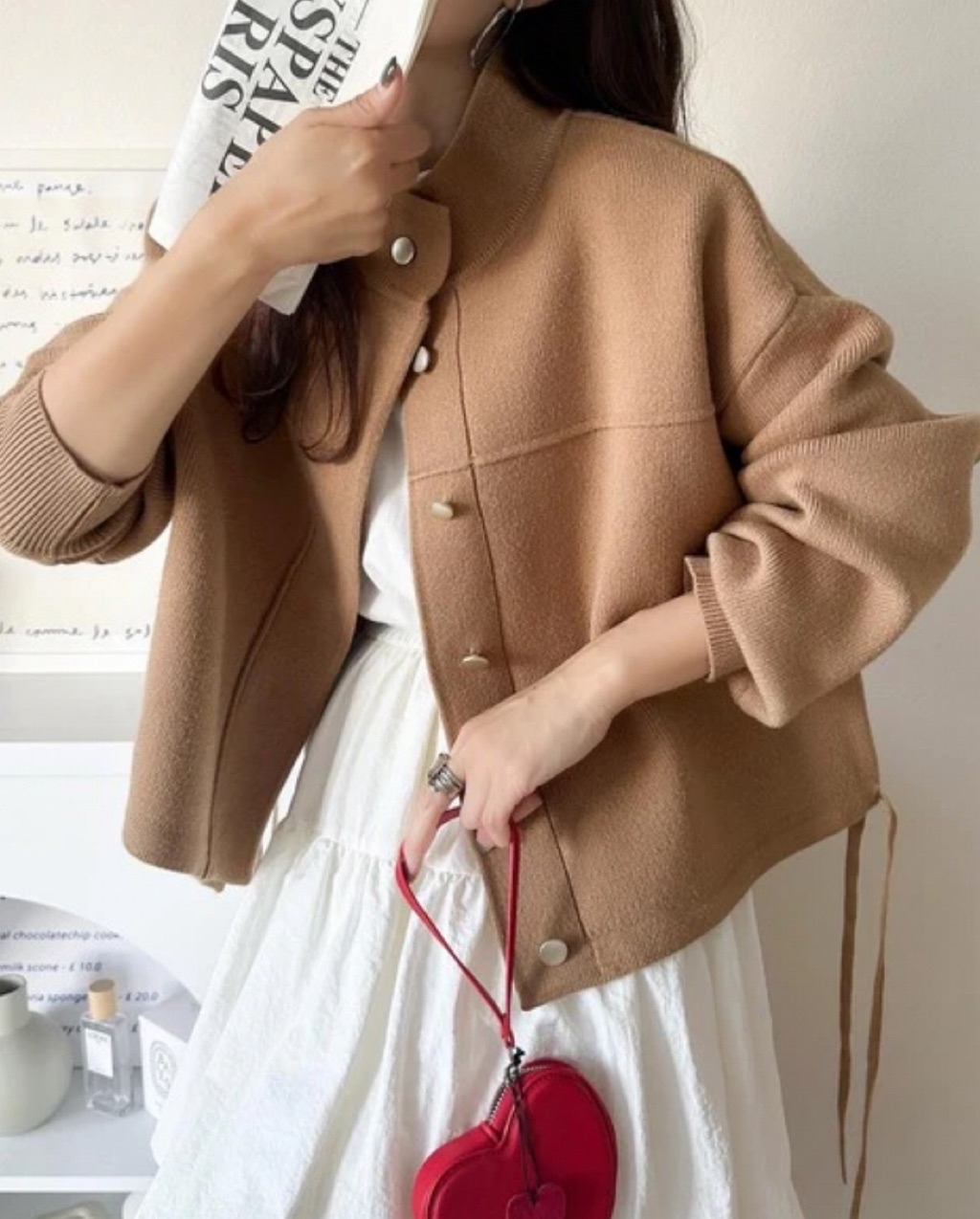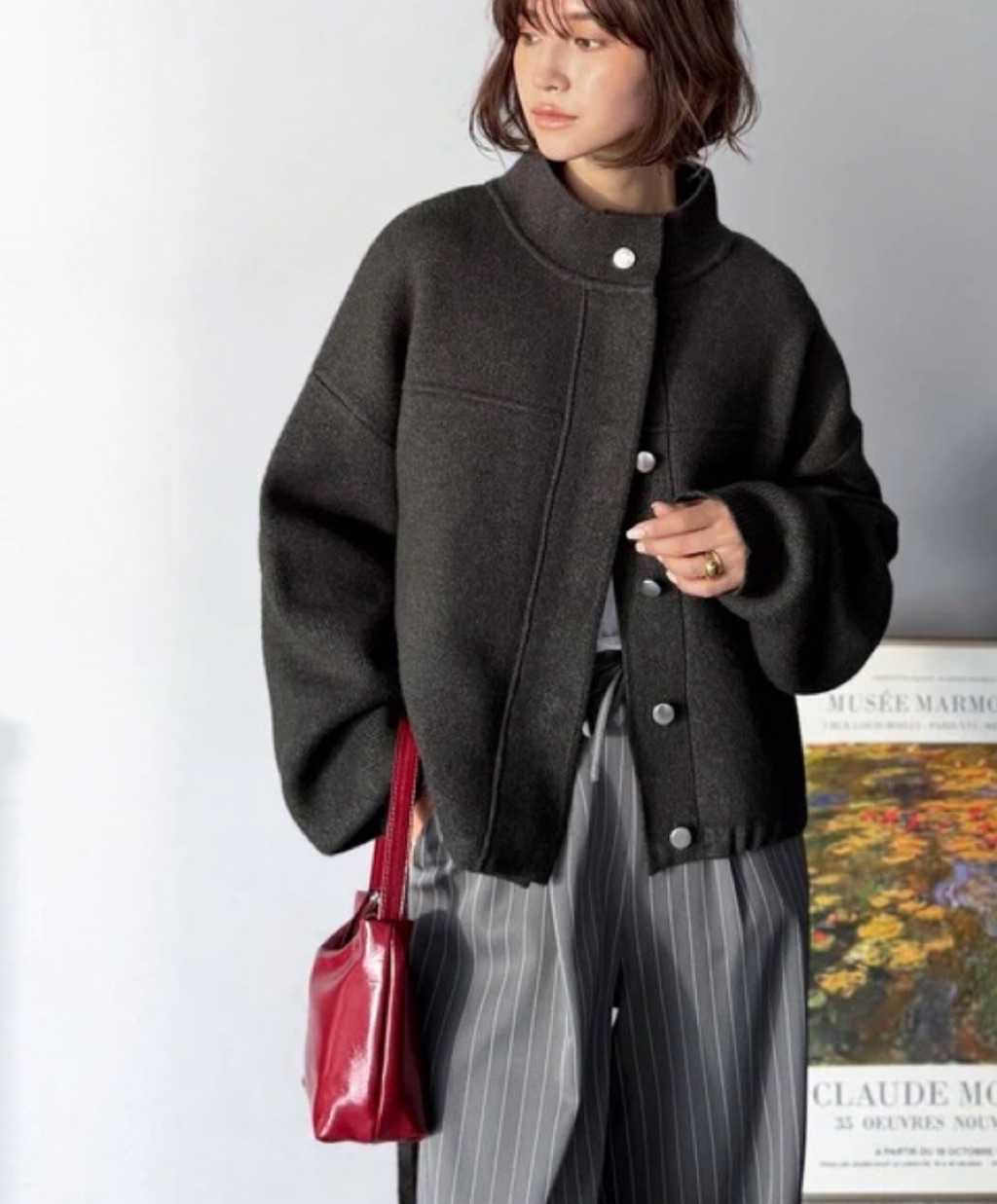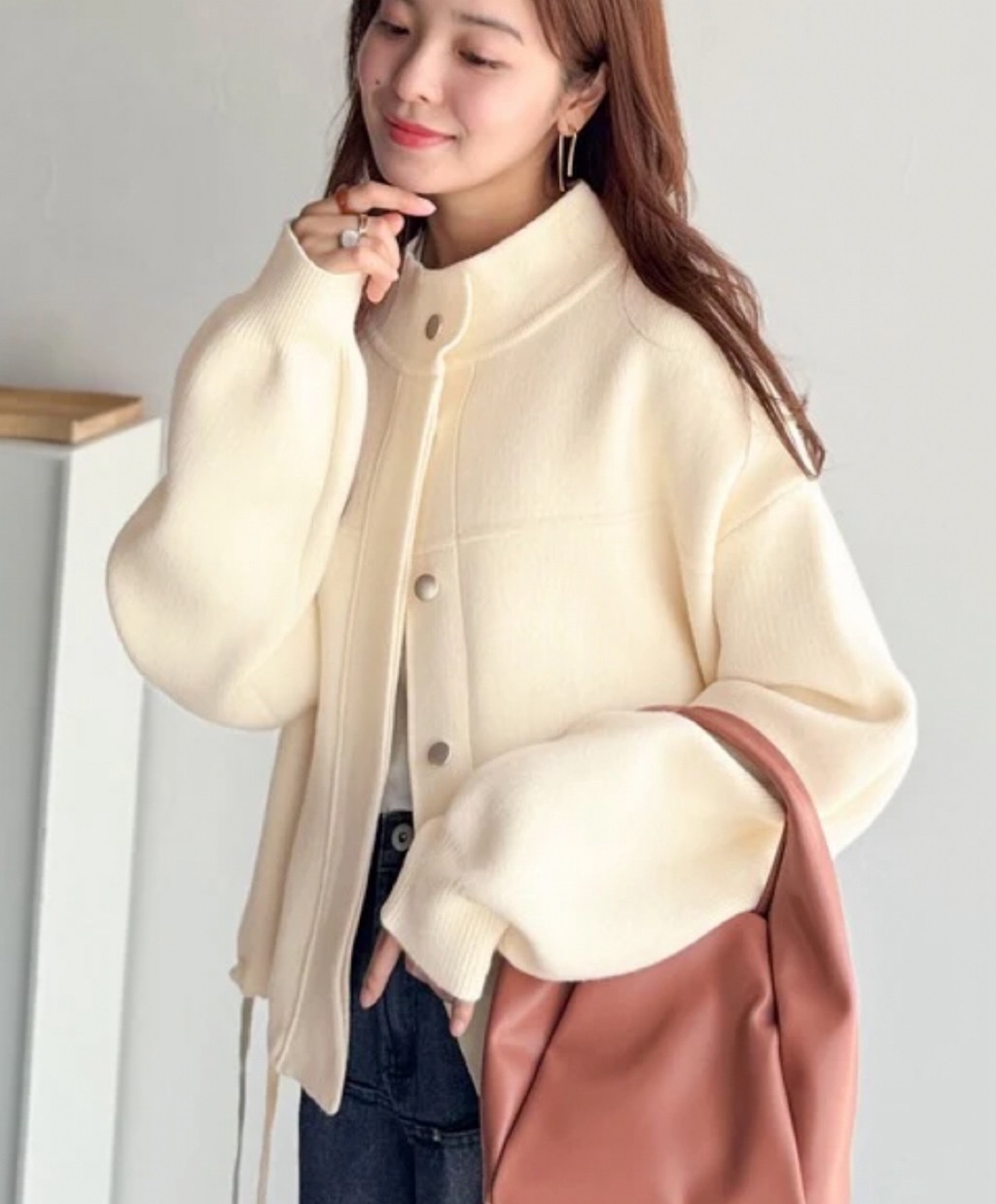 比翼ニットブルゾンは、柔らかいニット素材で作られた軽アウター。