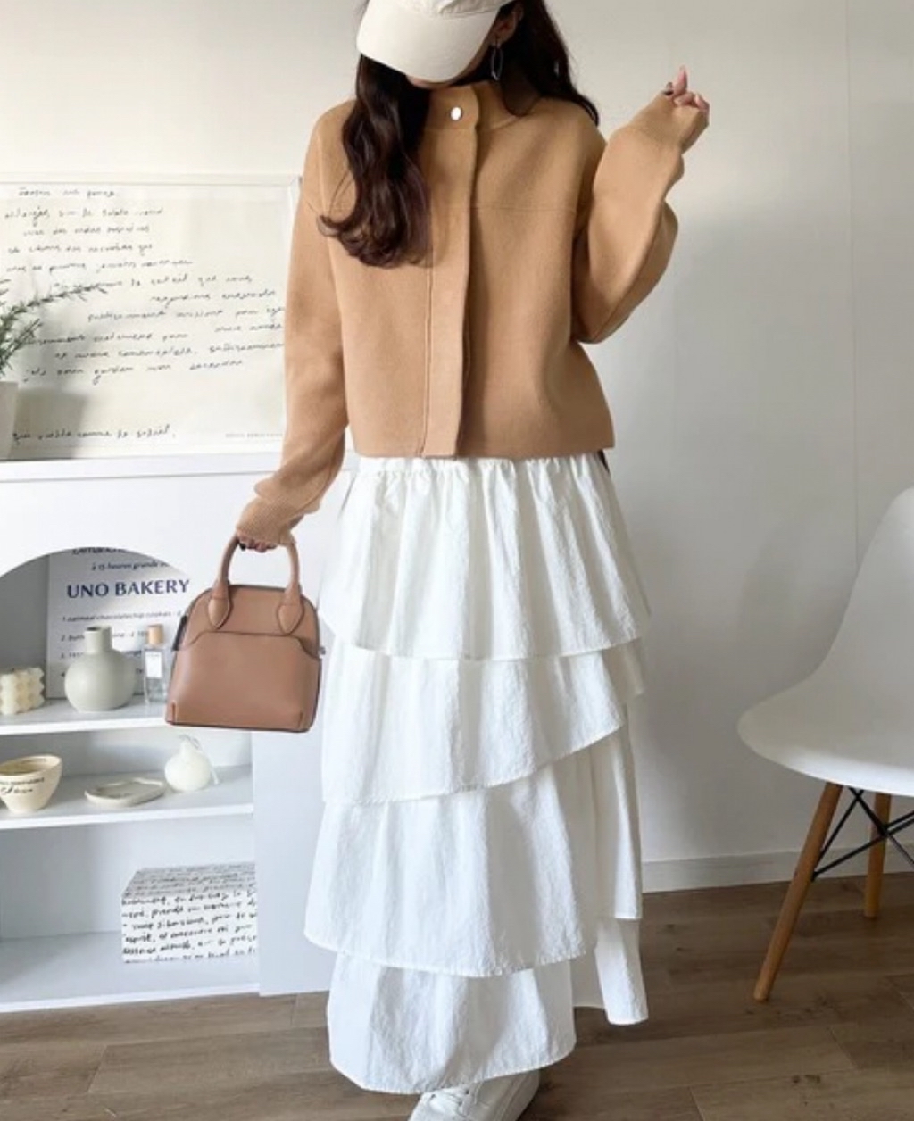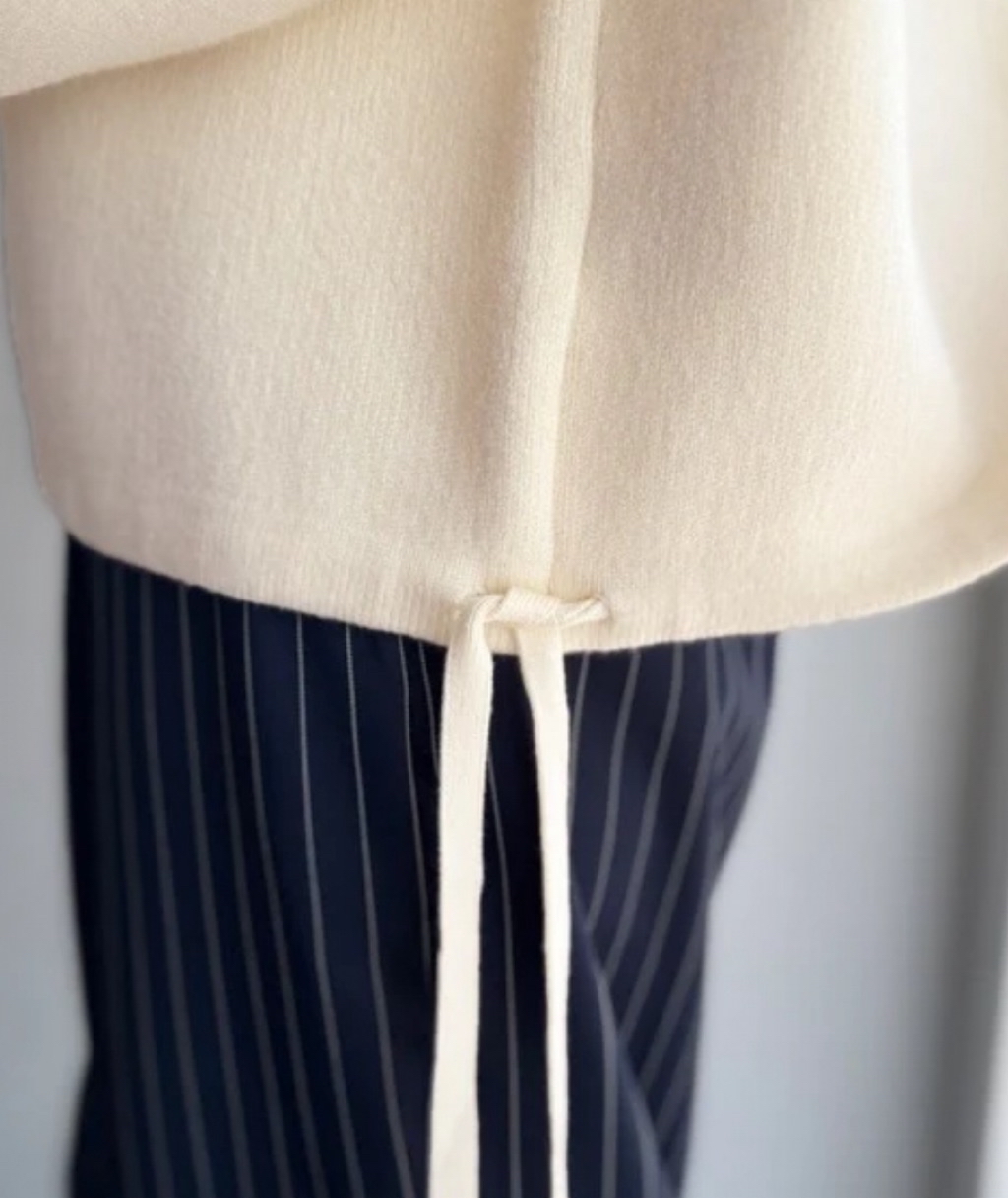 ドロスト紐は垂らしてもリボンでも結んでもOK、その日のコーデに合わせて雰囲気をチェンジできます。