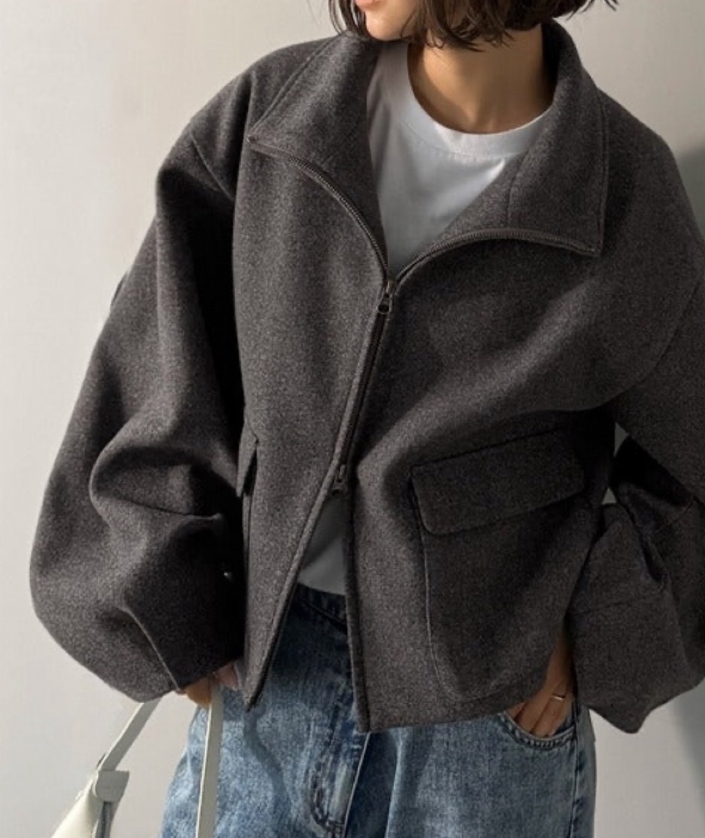 上質なメルトン素材を使用したショート丈ダブルZIPブルゾン。