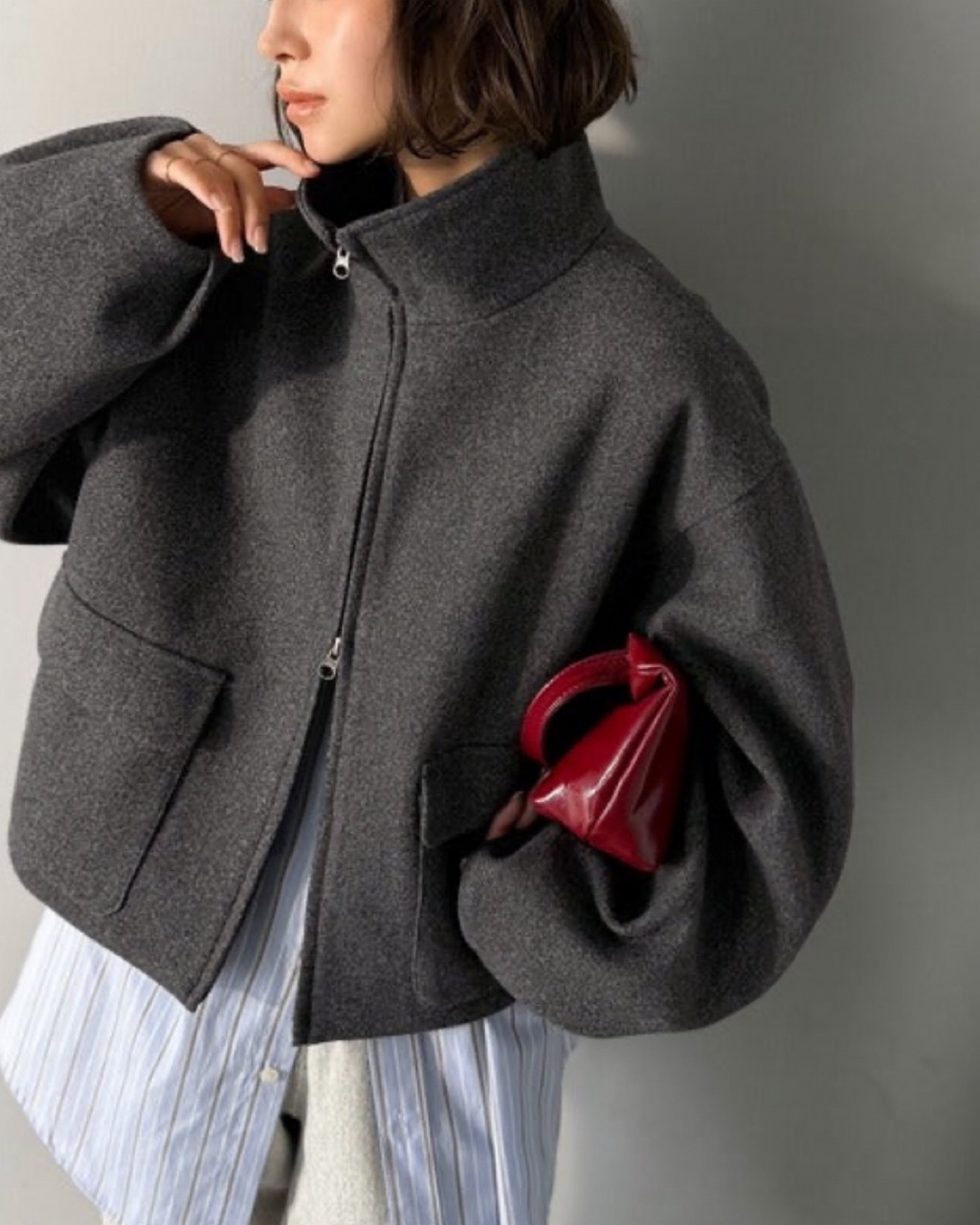 ショート丈なのでバランスがとりやすく、すっきり華奢見せが叶います。