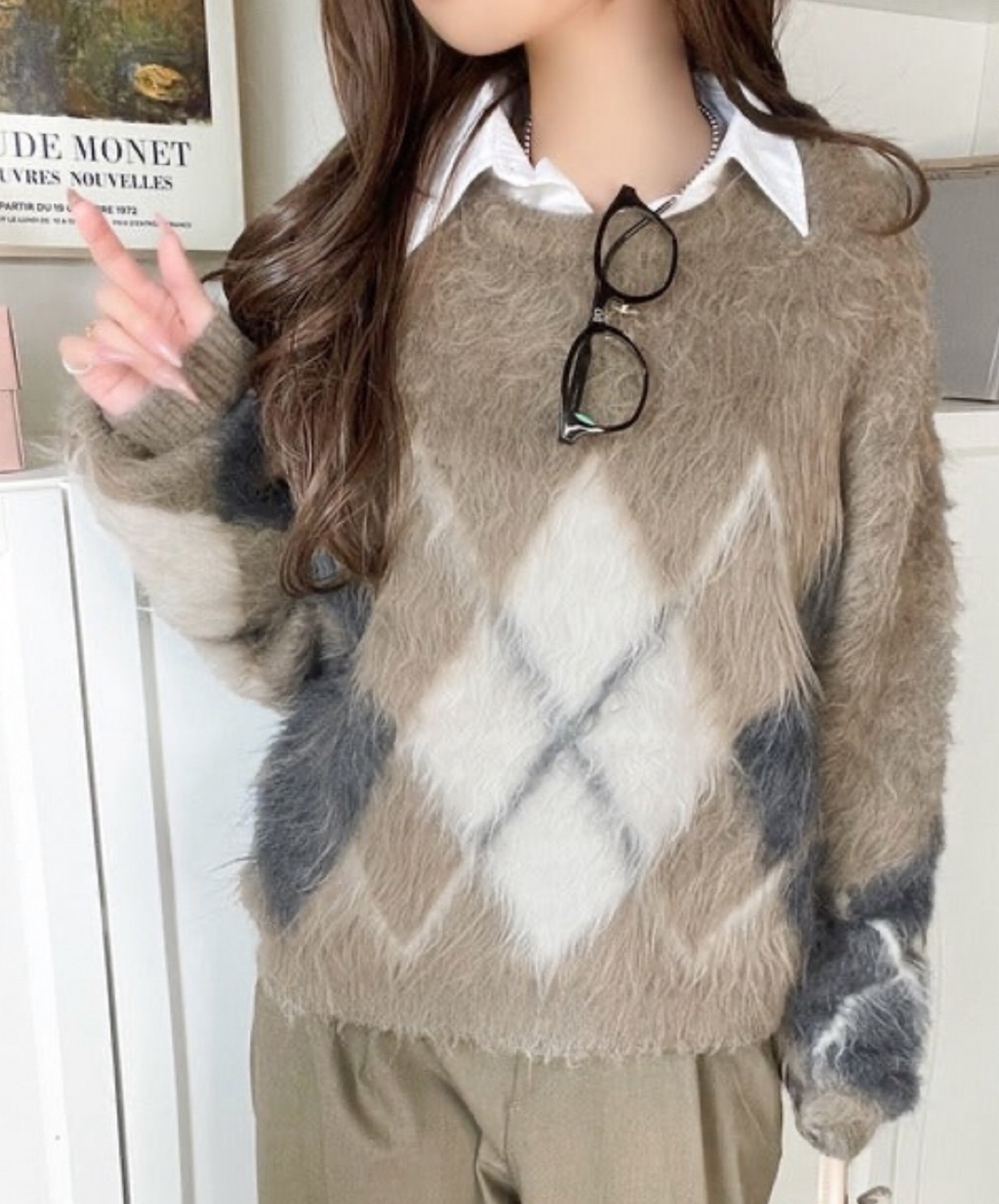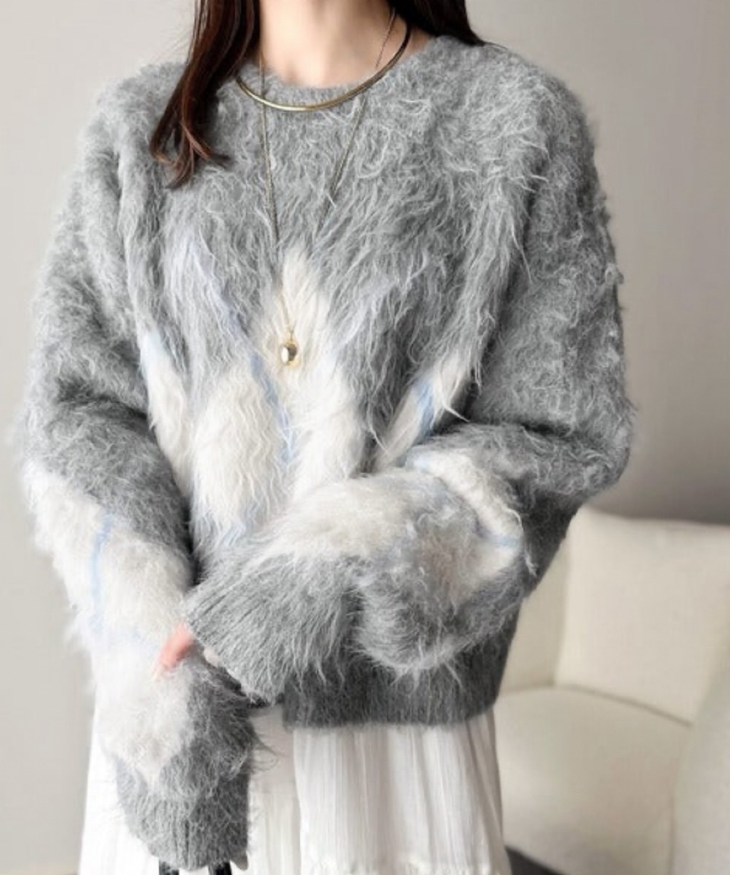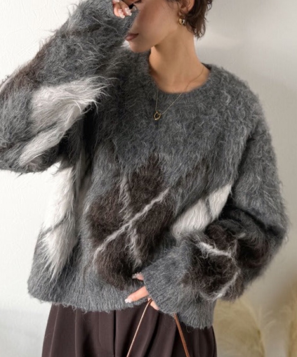起毛感で暖かく、アーガイル柄が楽しめるニットプルオーバー。