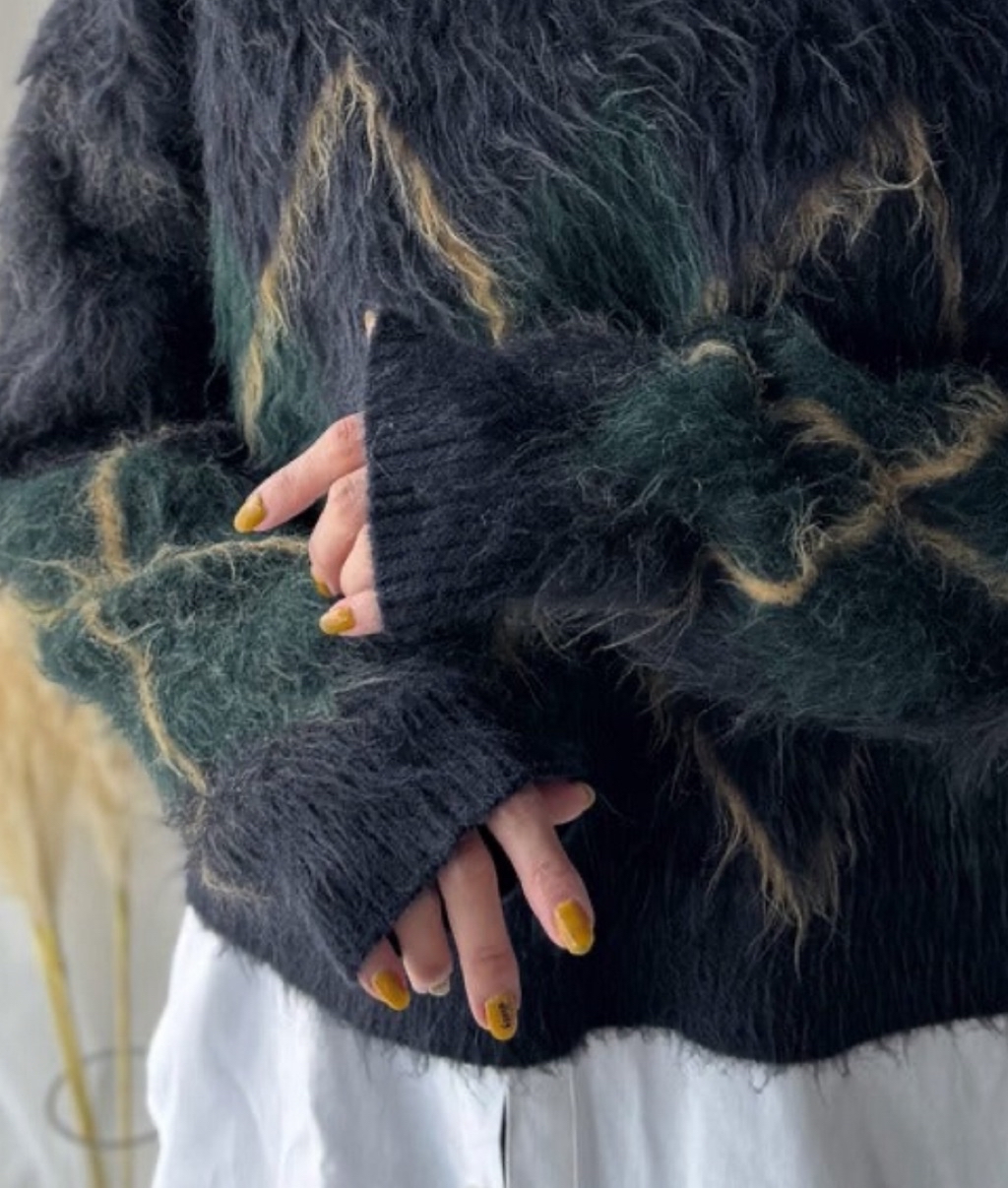温かみのある起毛加工が施された柔らかなニット素材。
