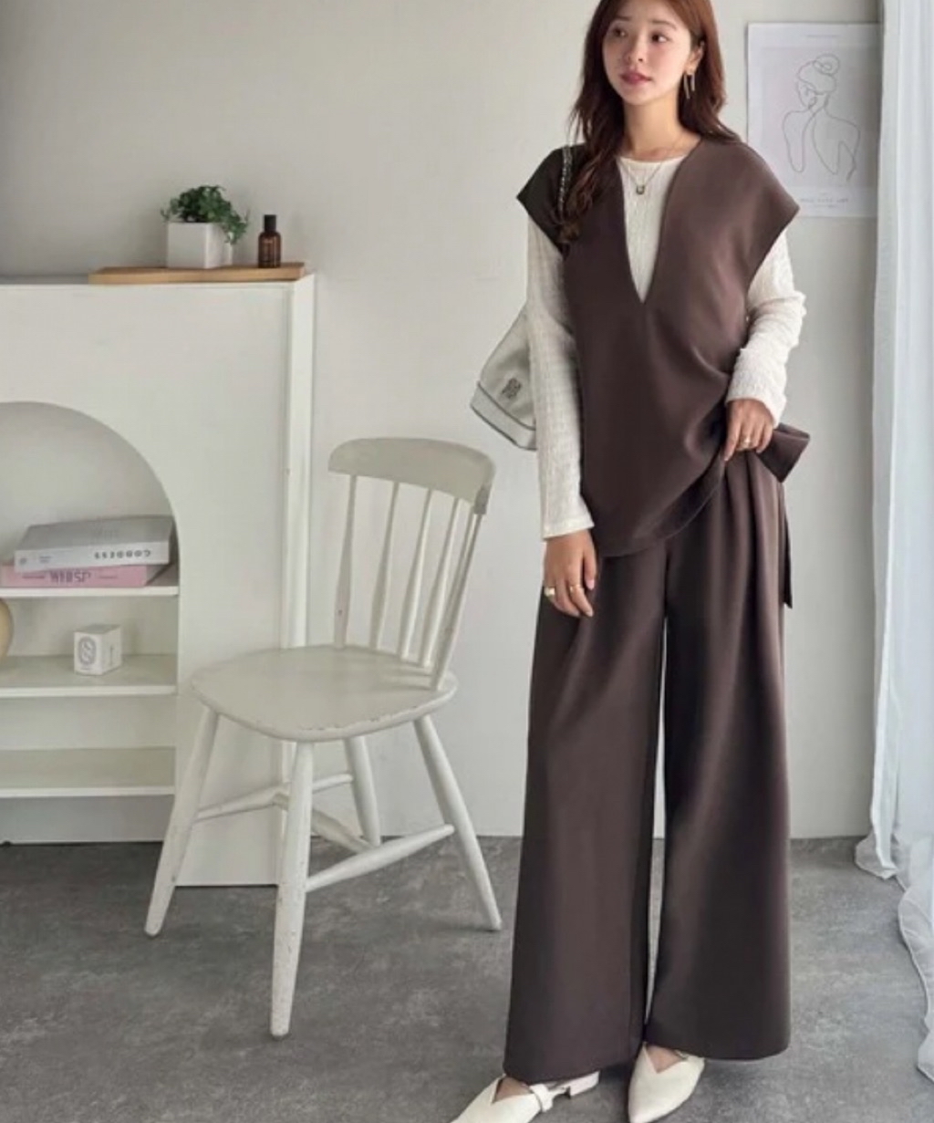 女性らしい抜け感を演出しながら、すっきりとした印象を与えてくれる一枚です。