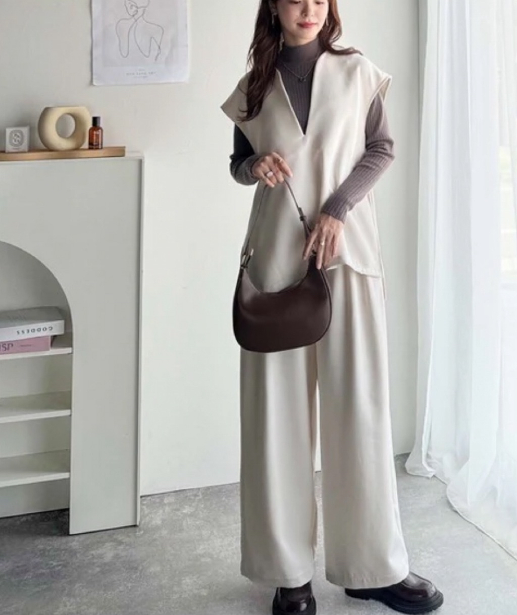・ブラウスやタートルなどインナーで雰囲気チェンジ◎