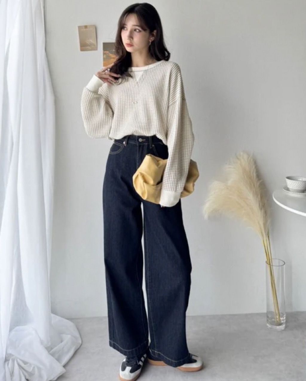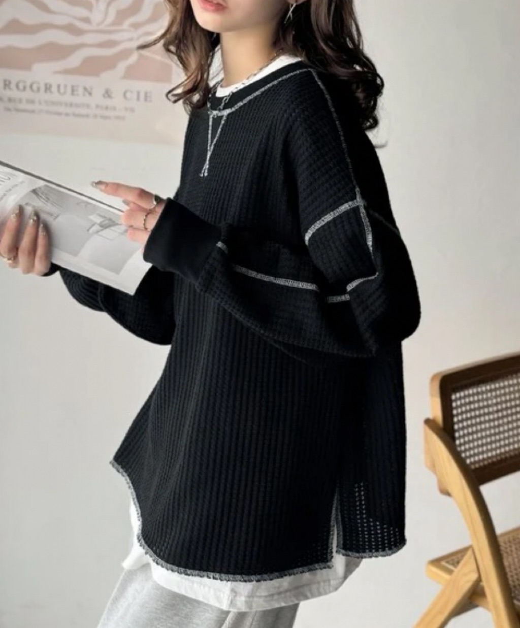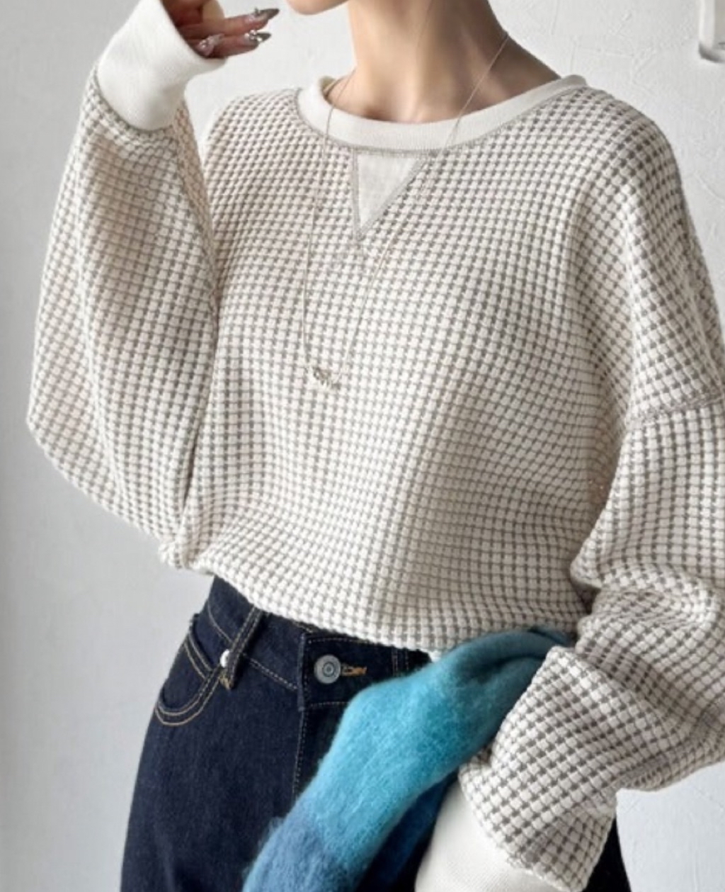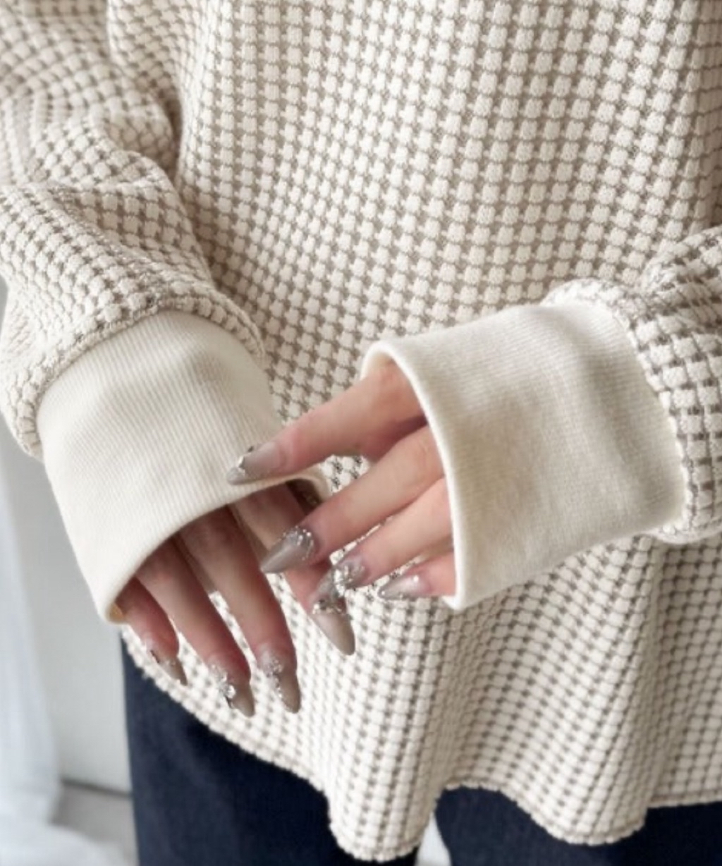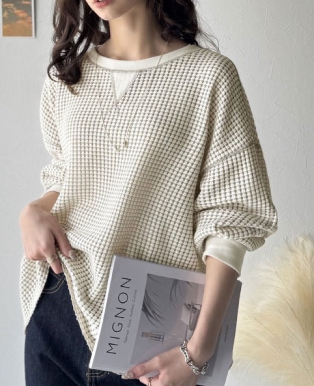 ワッフル編みが心地よい、こなれ感たっぷりのカットソー。
