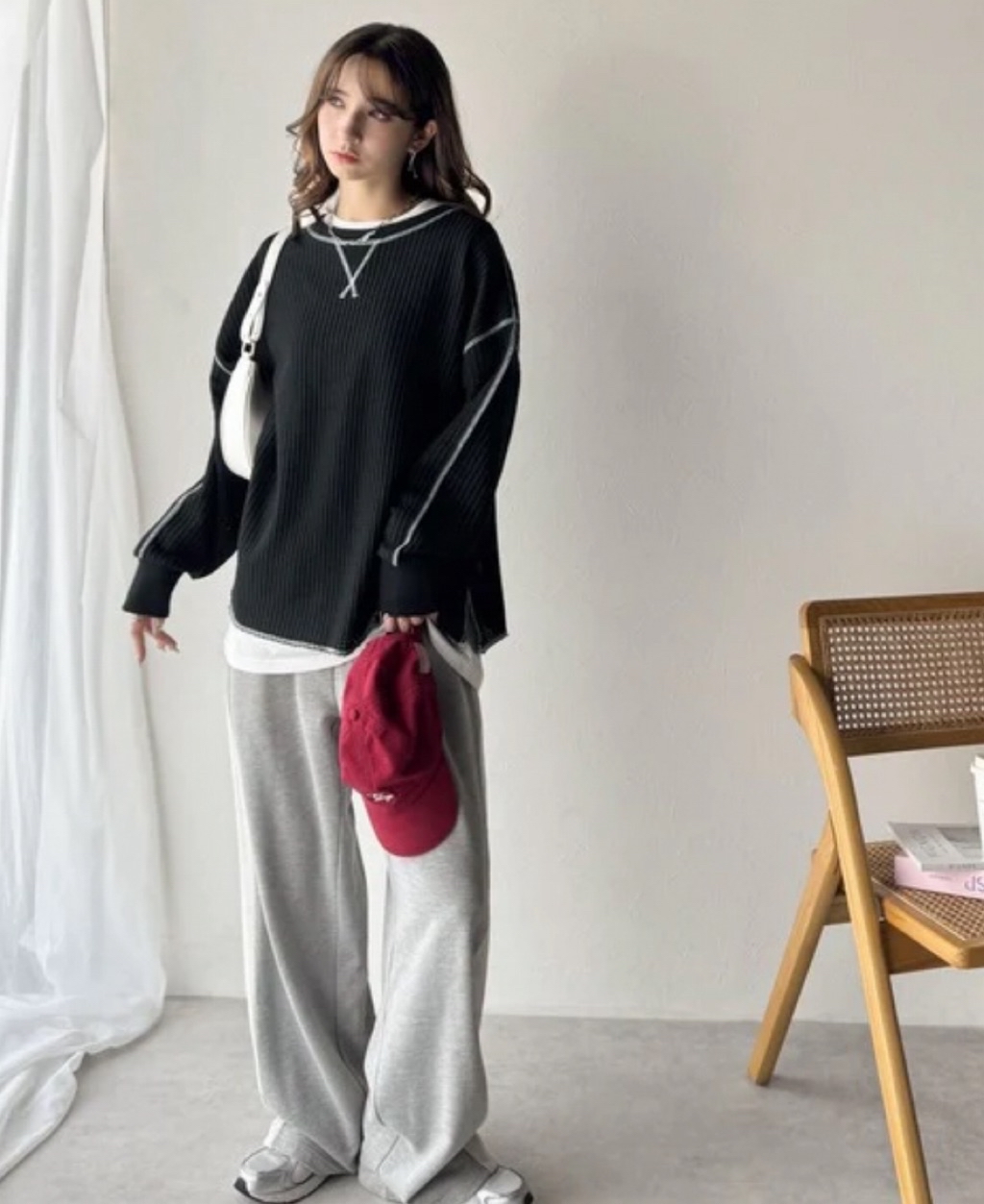 配色ステッチがコーデのアクセントになる着映え感あるロンTです。