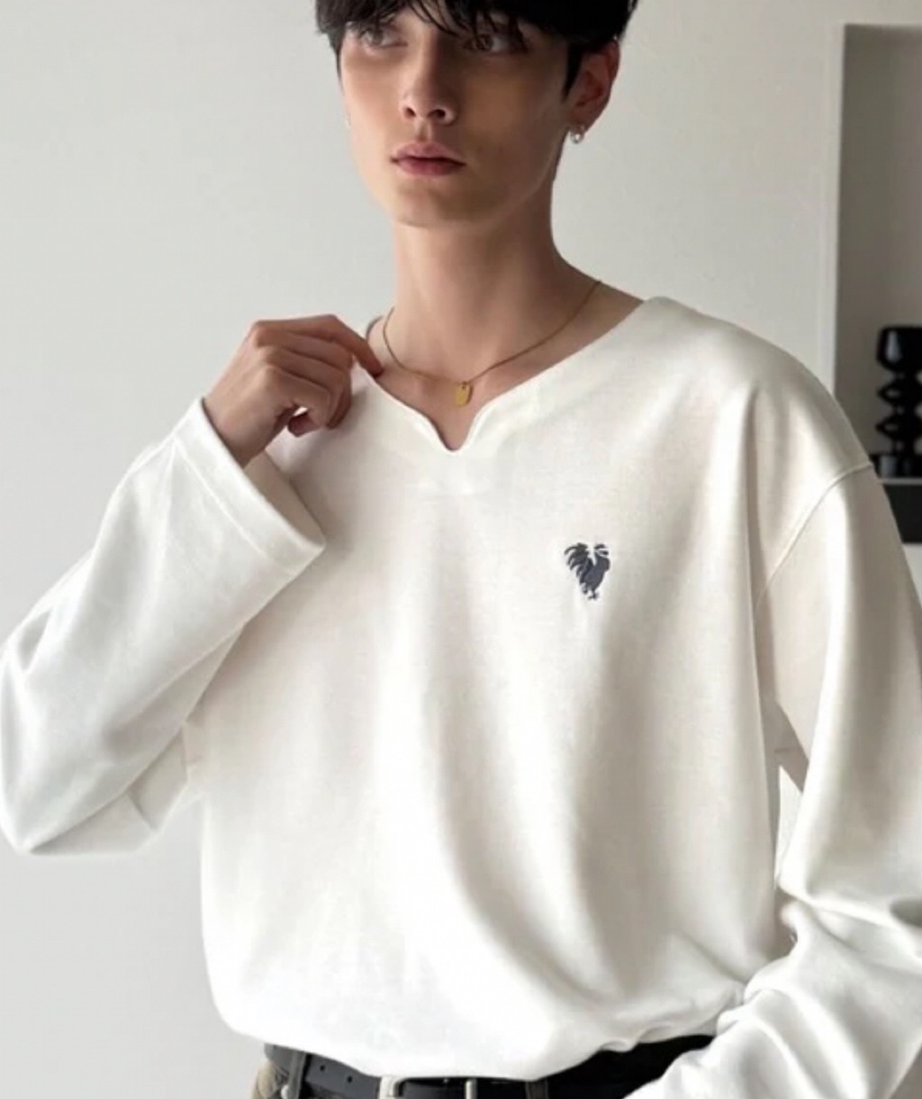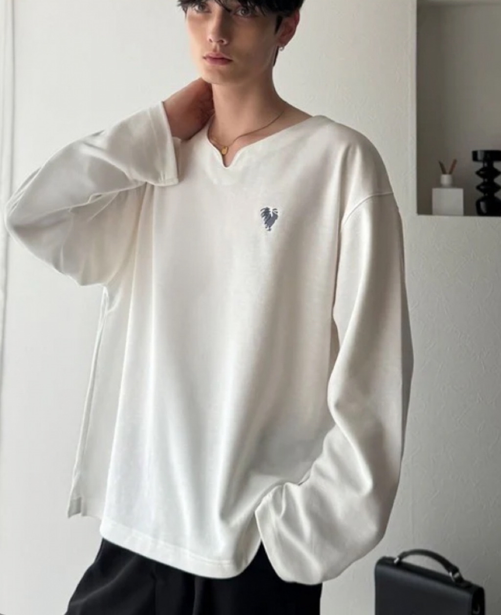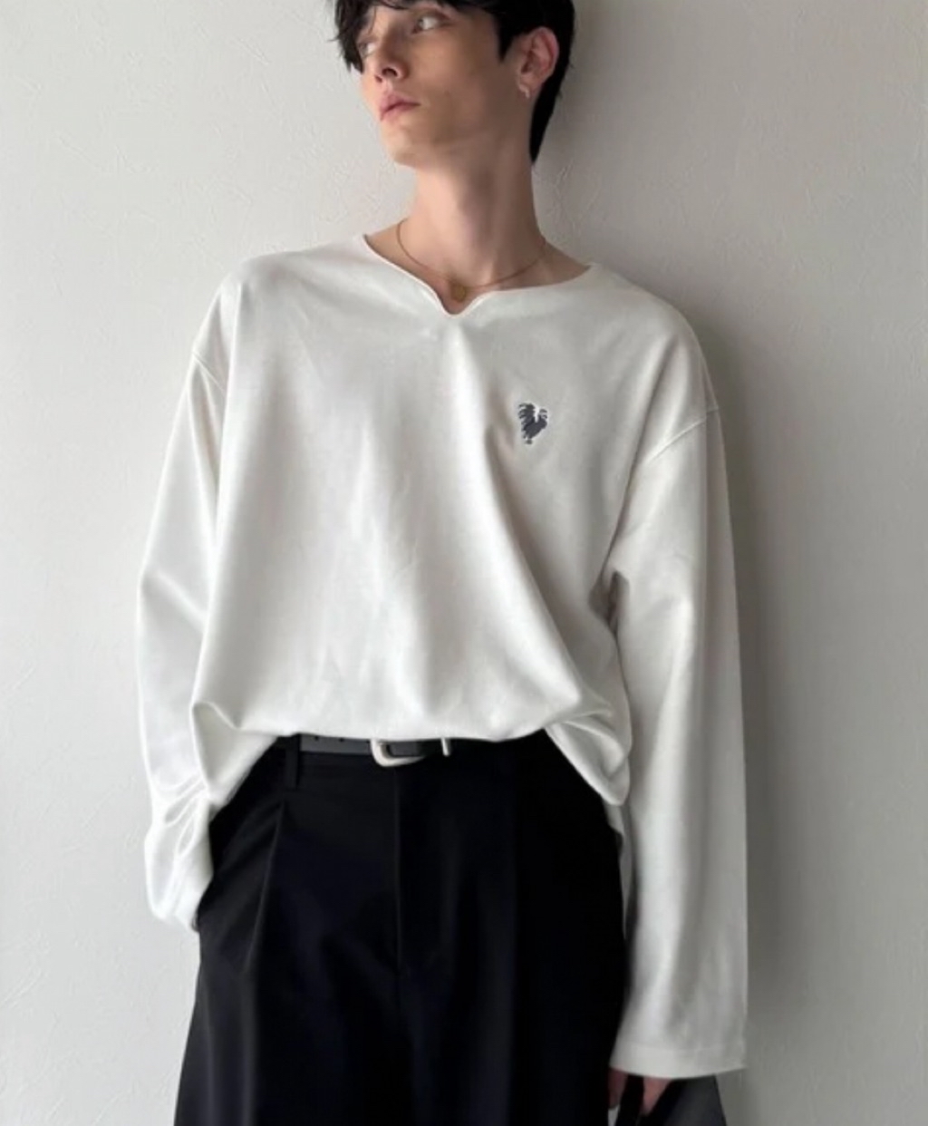 左胸に配置したワンポイントデザインがシンプルな中に存在感をプラス。