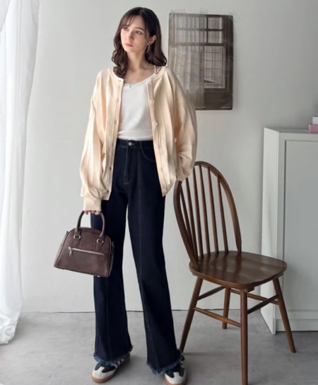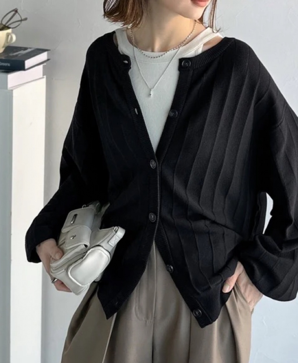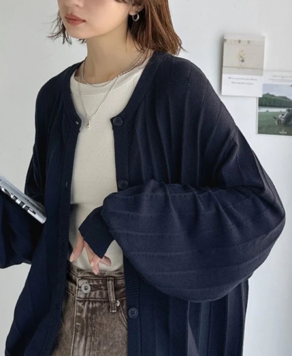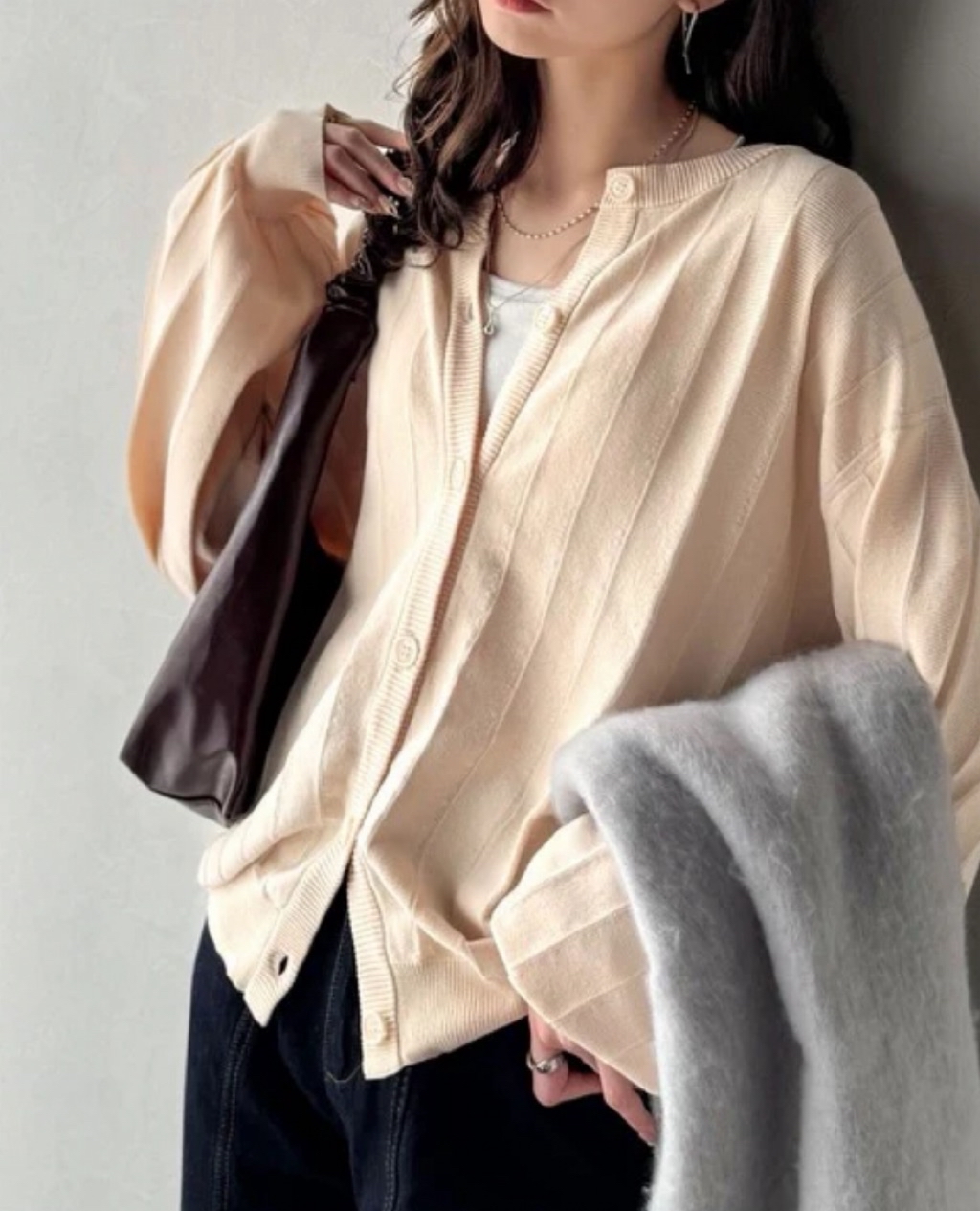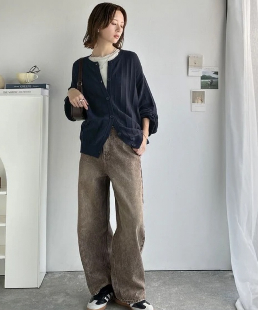 幅広くコーディネートできる万能カーディガンです。