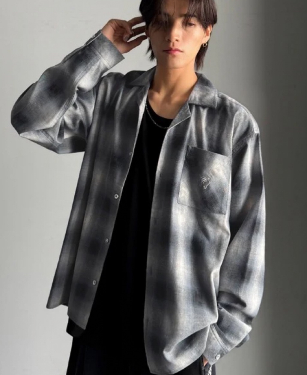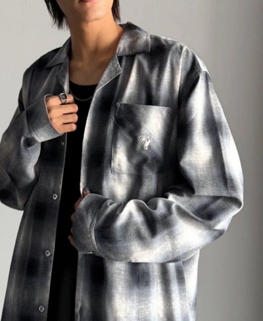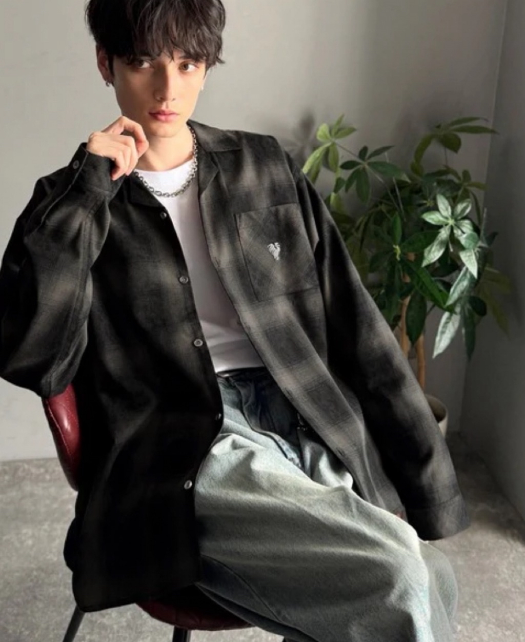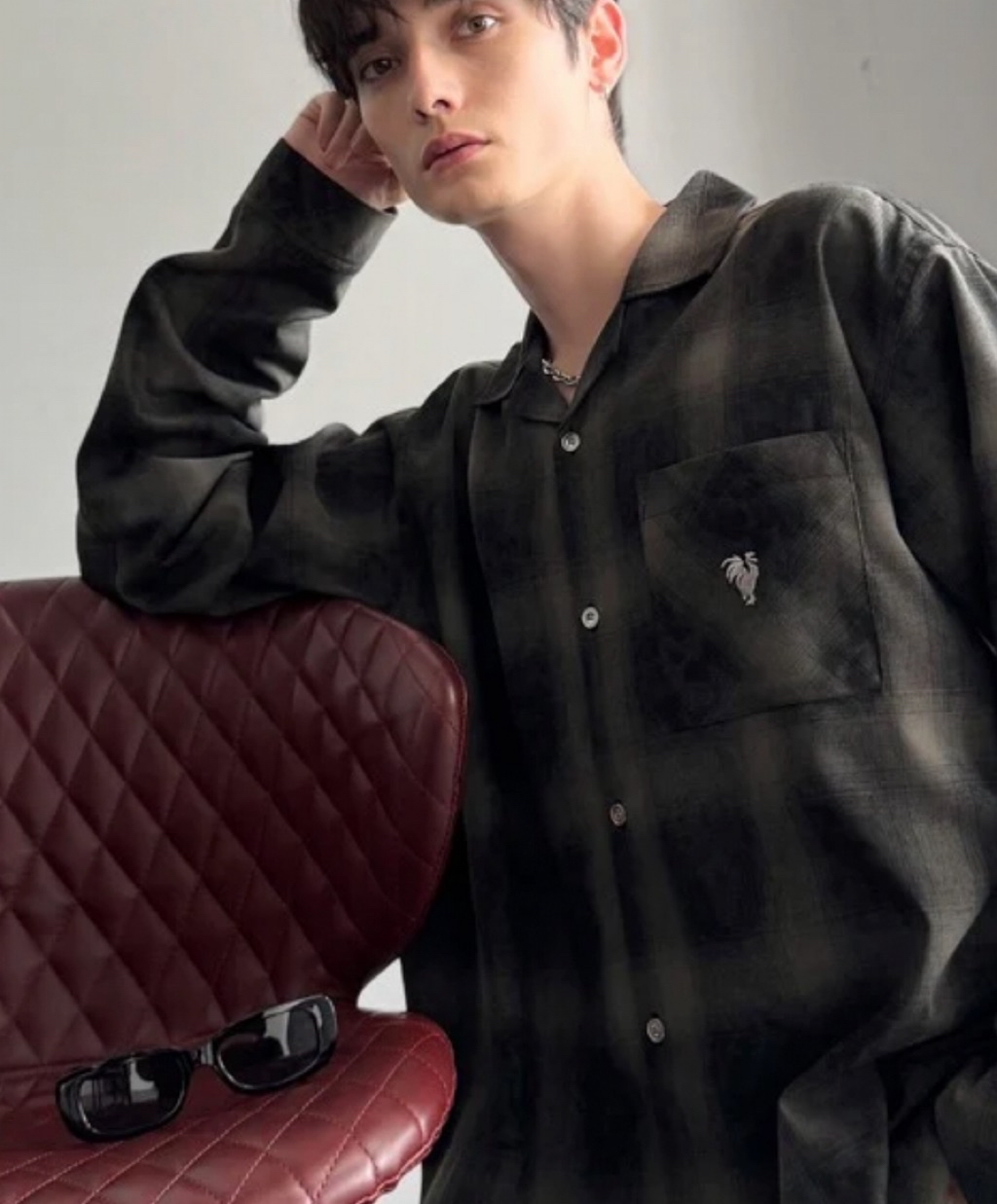 胸ポケットのさりげない刺繍とオープンカラーの抜け感が、日常のスタイリングを都会的にアップデート。