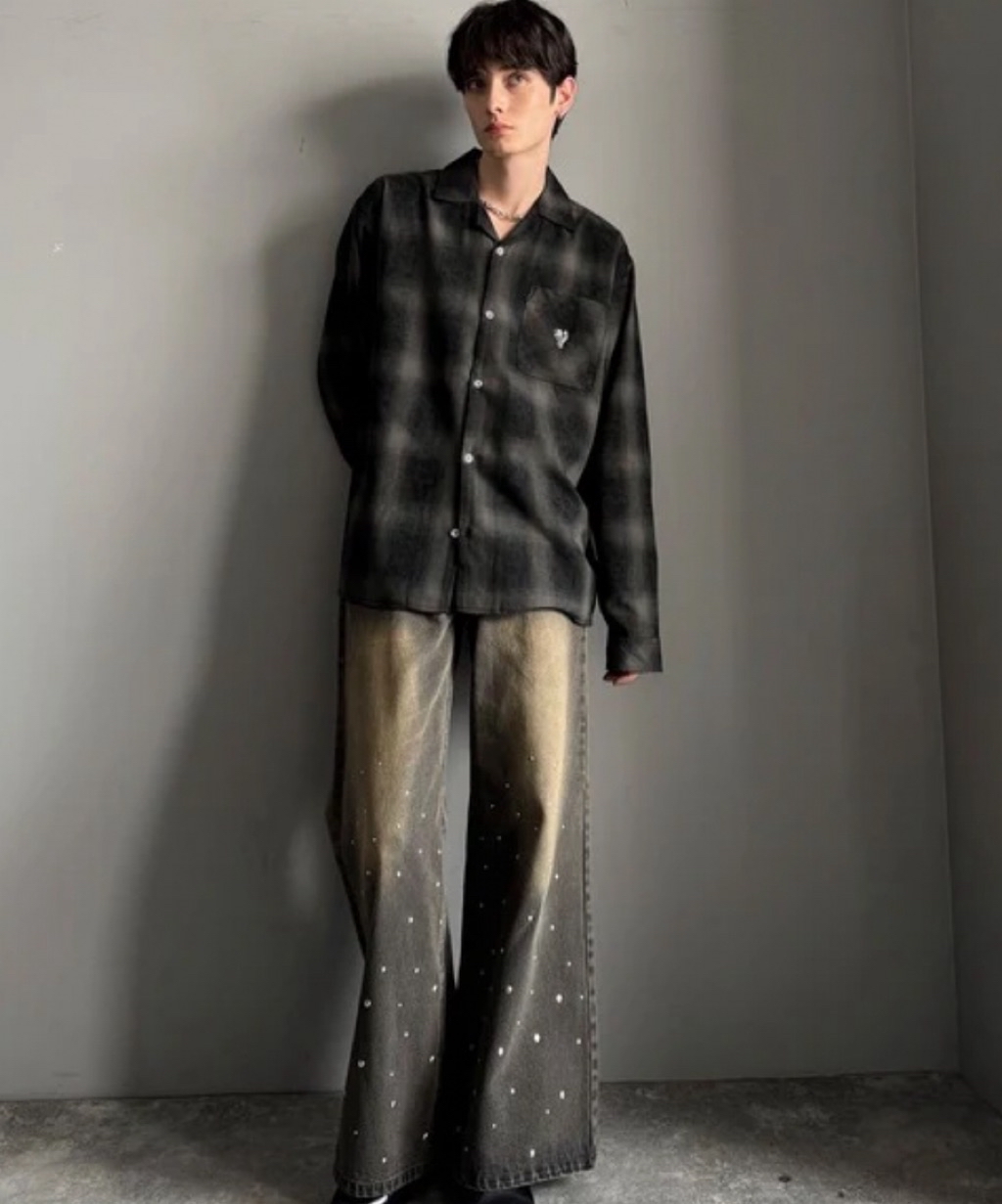 柔らかな風合いの高品質素材にヴィンテージ風の抜染チェック柄を落とし込んだ一枚。