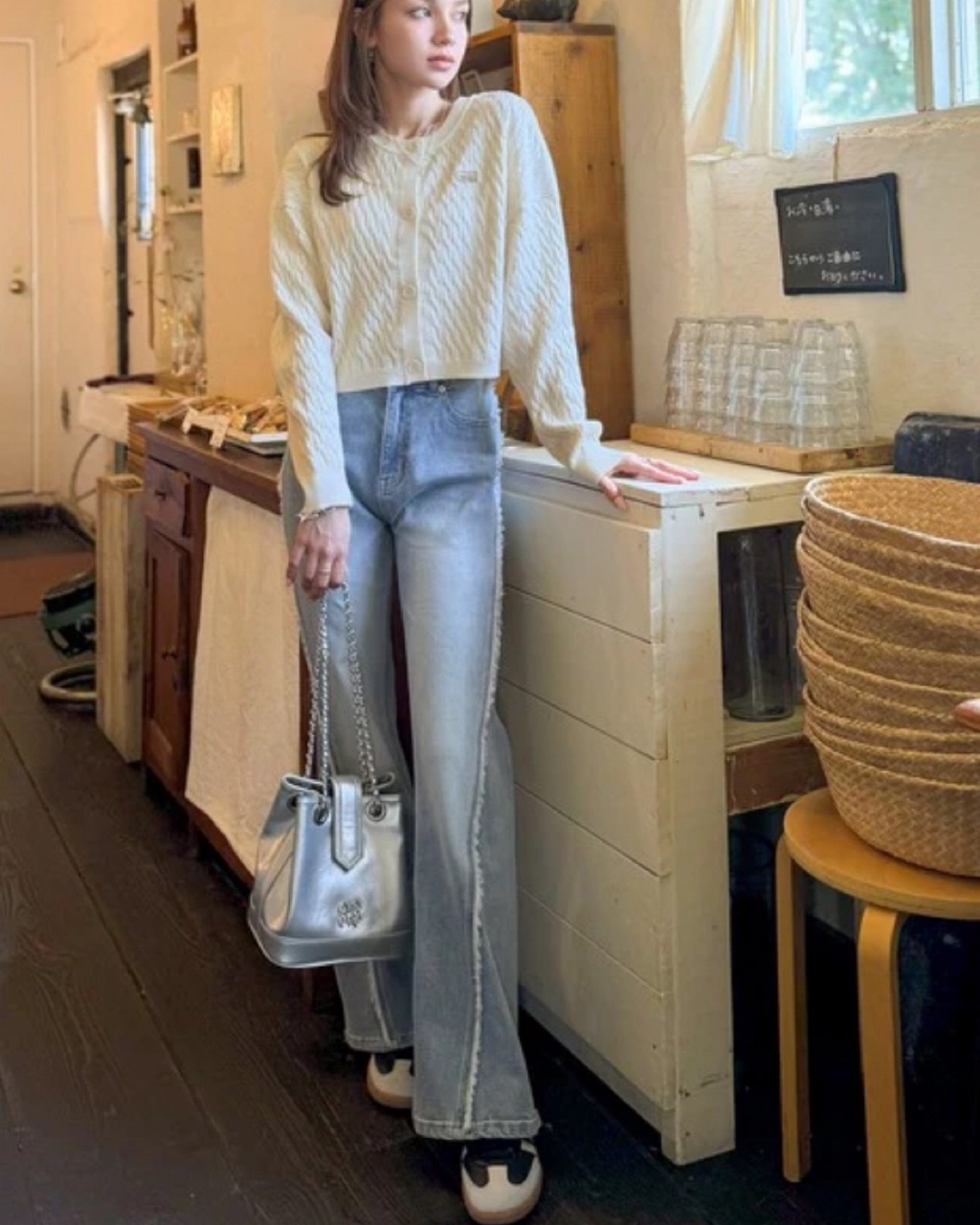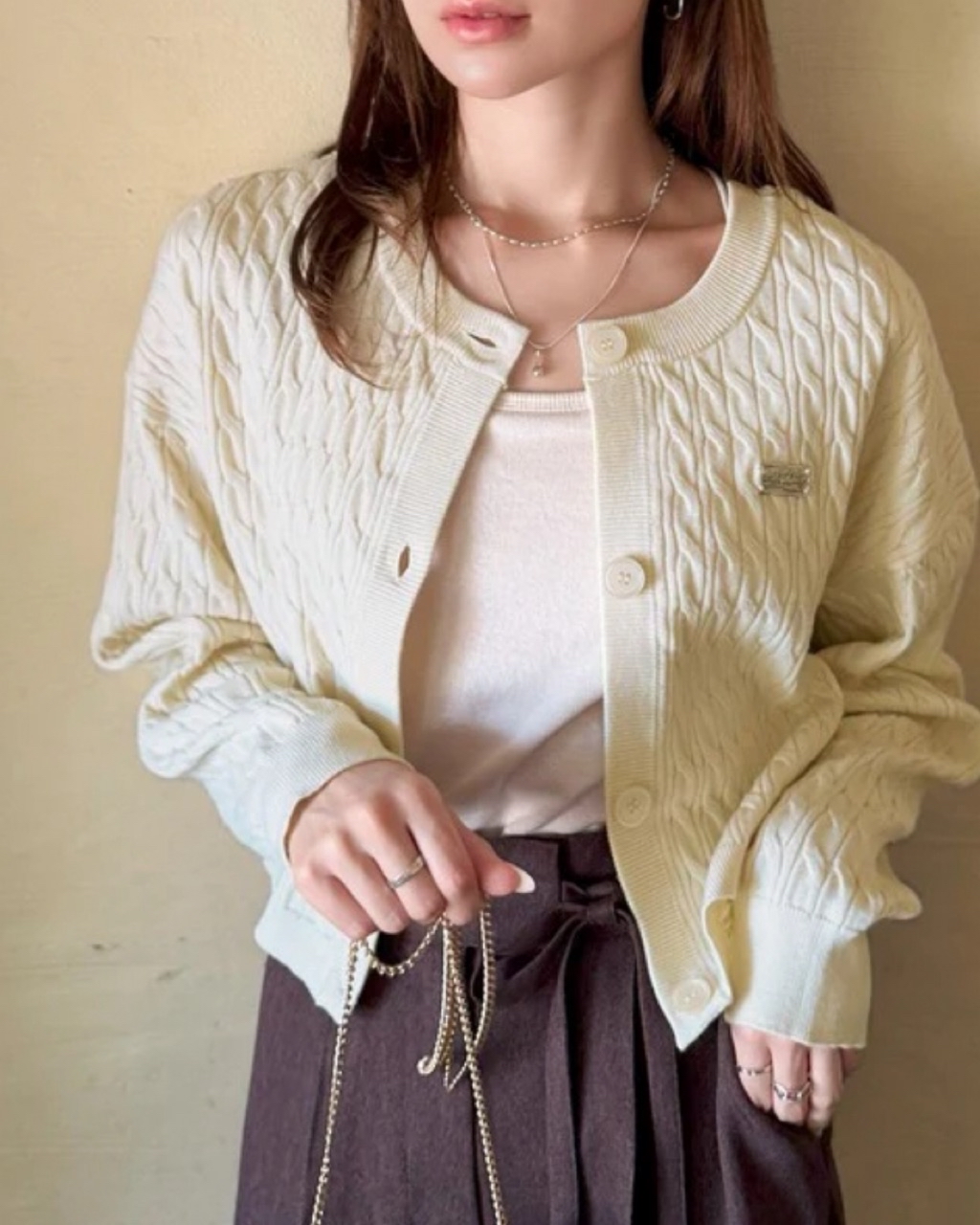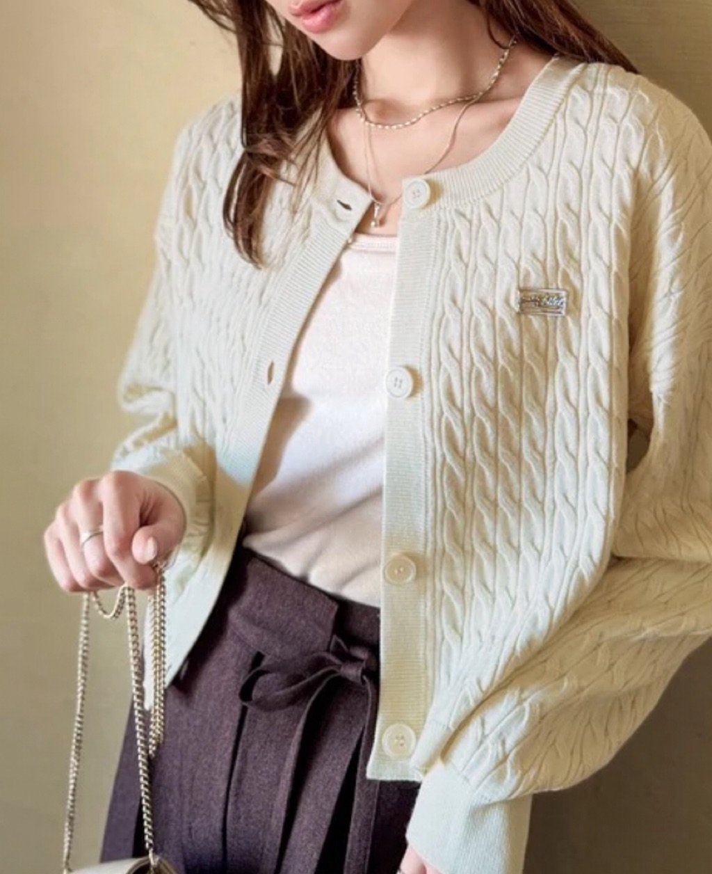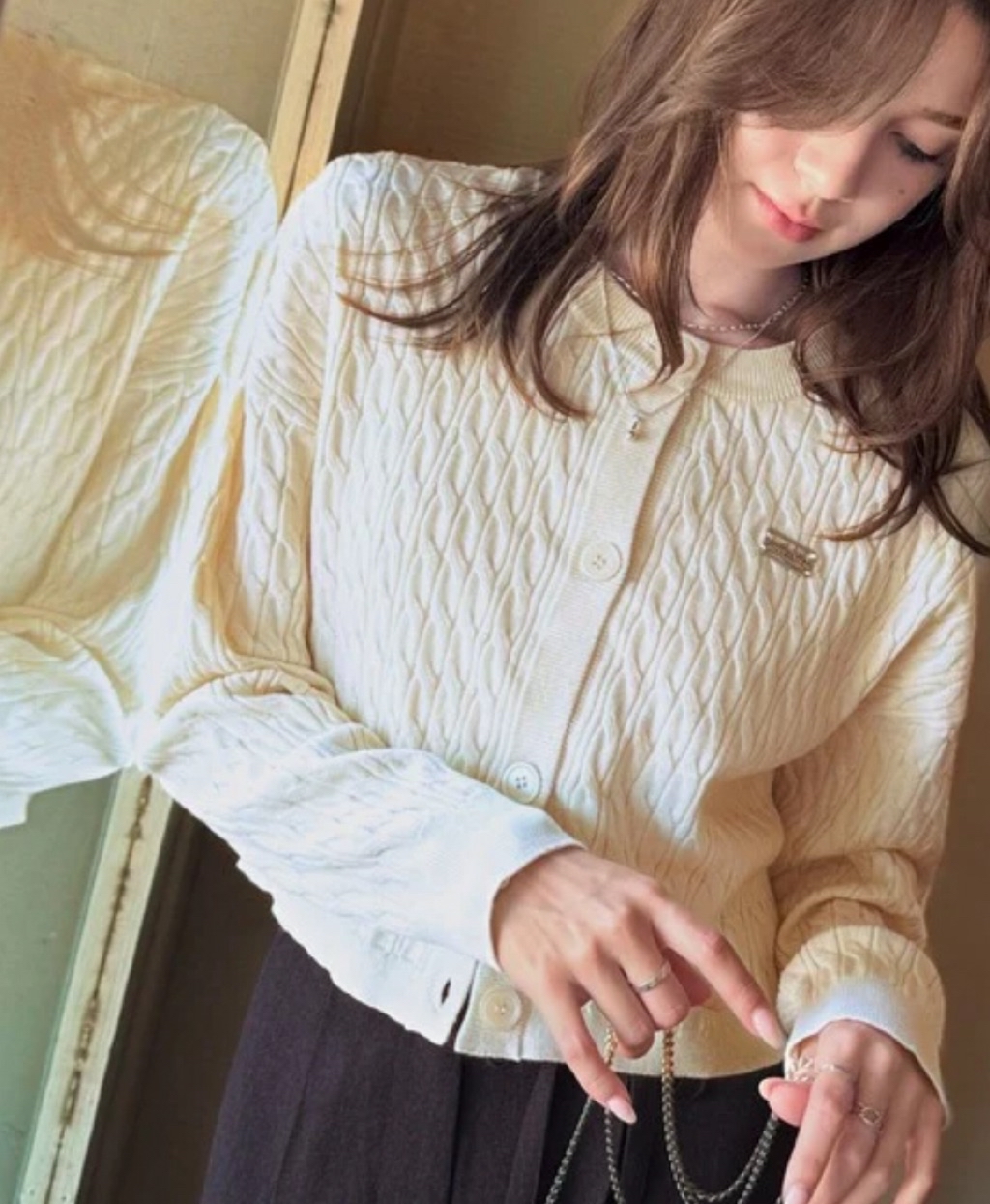 立体感のあるランダムケーブルが特徴の、大人のための上品カーディガン♪
