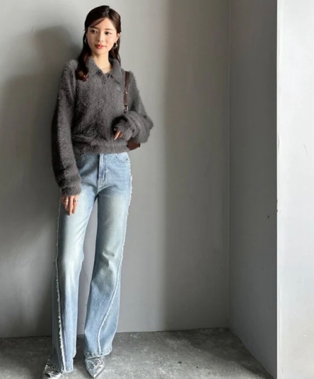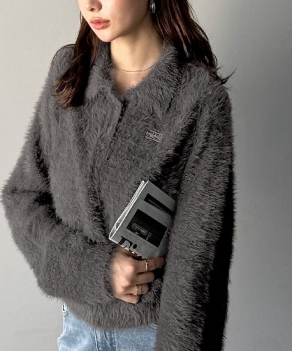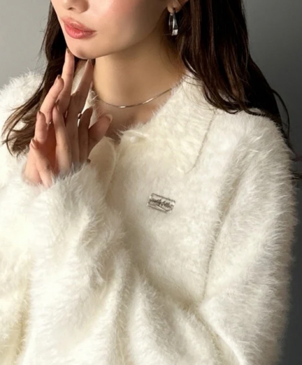 ふんわりとしたフェザーシャギー素材で、思わず触れたくなるような肌触りが特徴です。