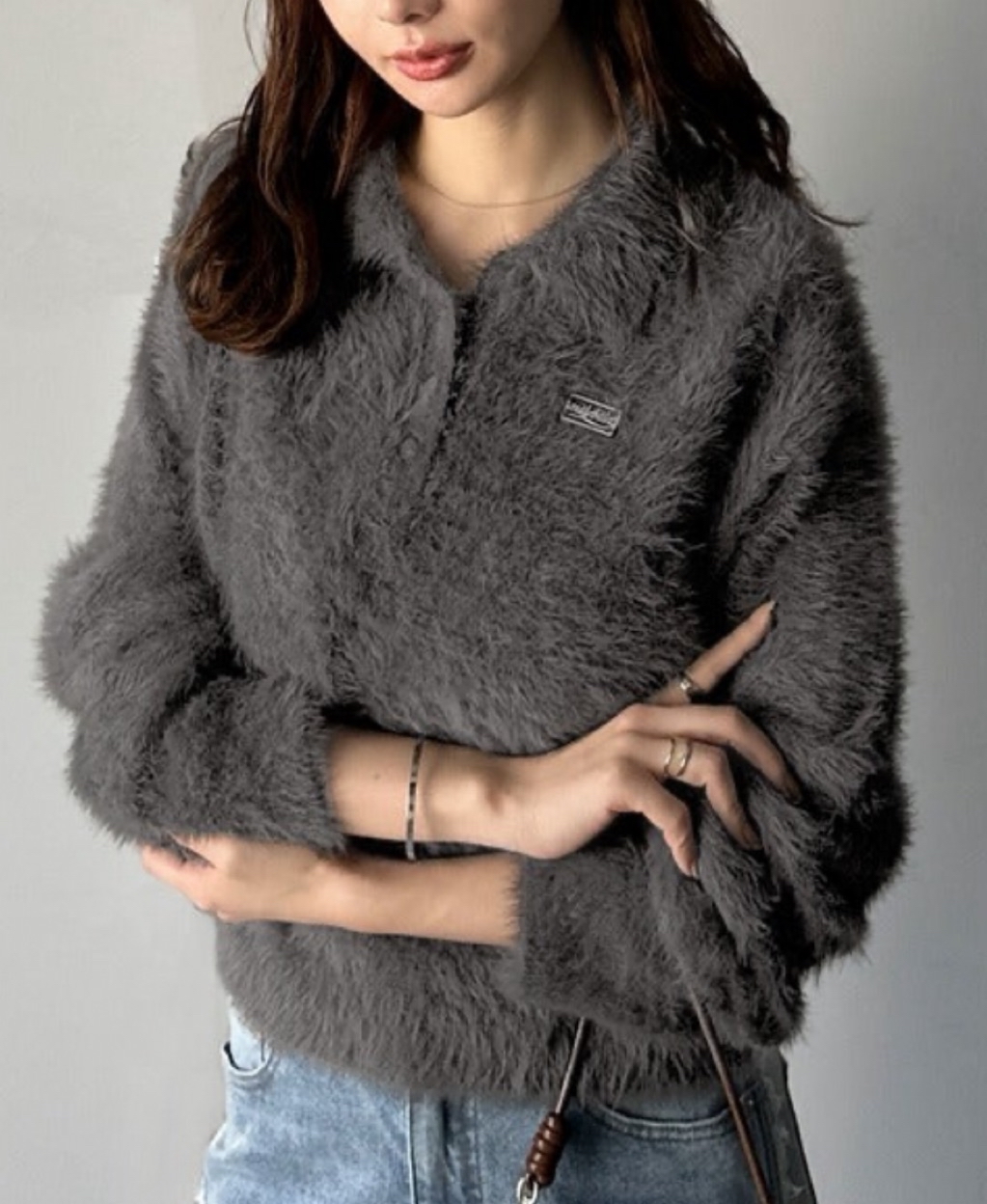 日本預購【Lottie🇯🇵】MILY BILET カジュアルな大人ふんわり。長毛足 保暖翻領 半開釦 長袖上衣