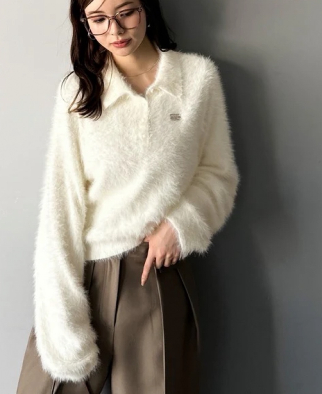 この秋冬大活躍のフェザーシャギーポロニットが登場。