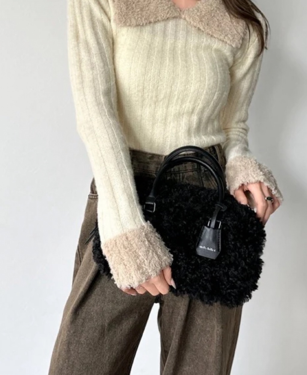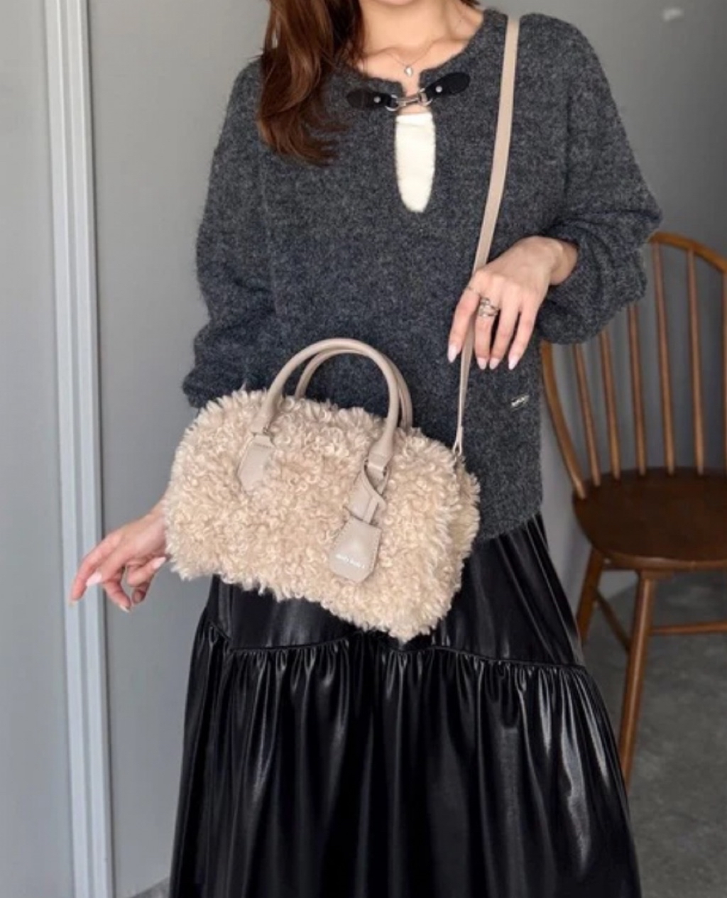季節感あふれるボア素材と上品なキーチャーム使いが目を引くミニボストン。