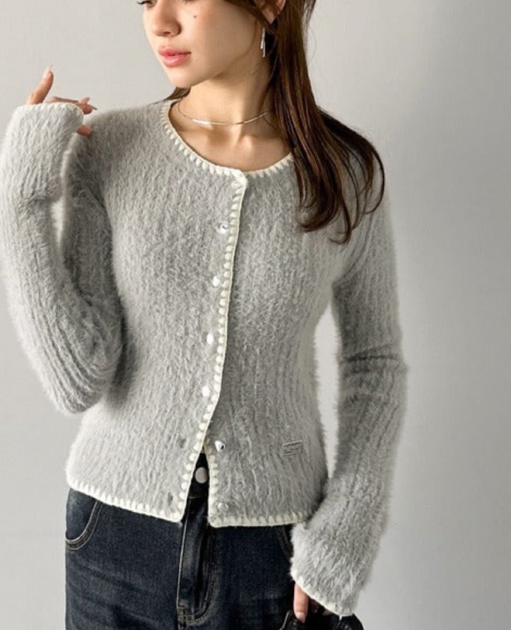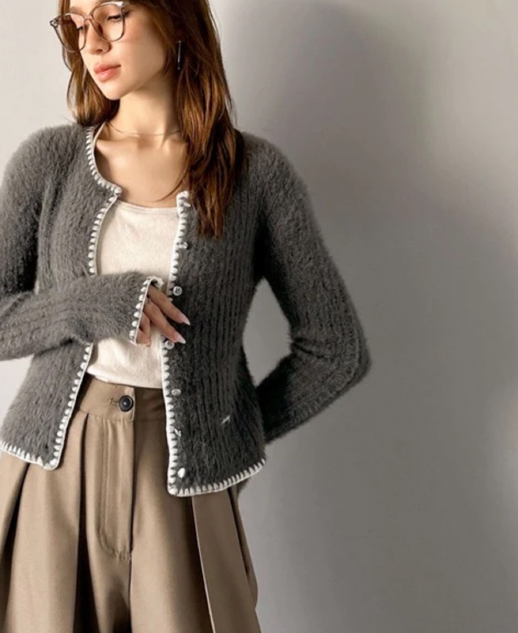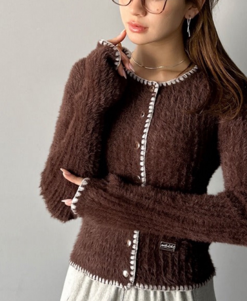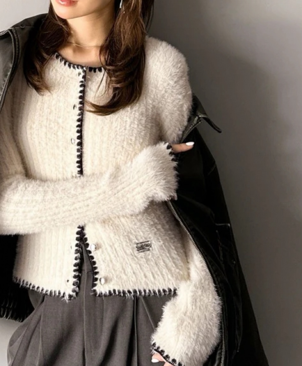季節感たっぷりのシャギーリブ素材に配色ステッチで