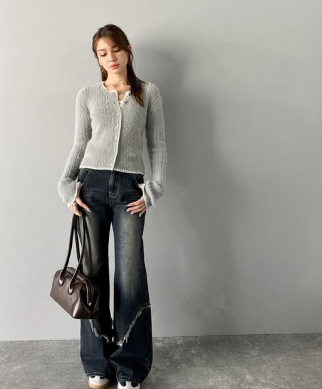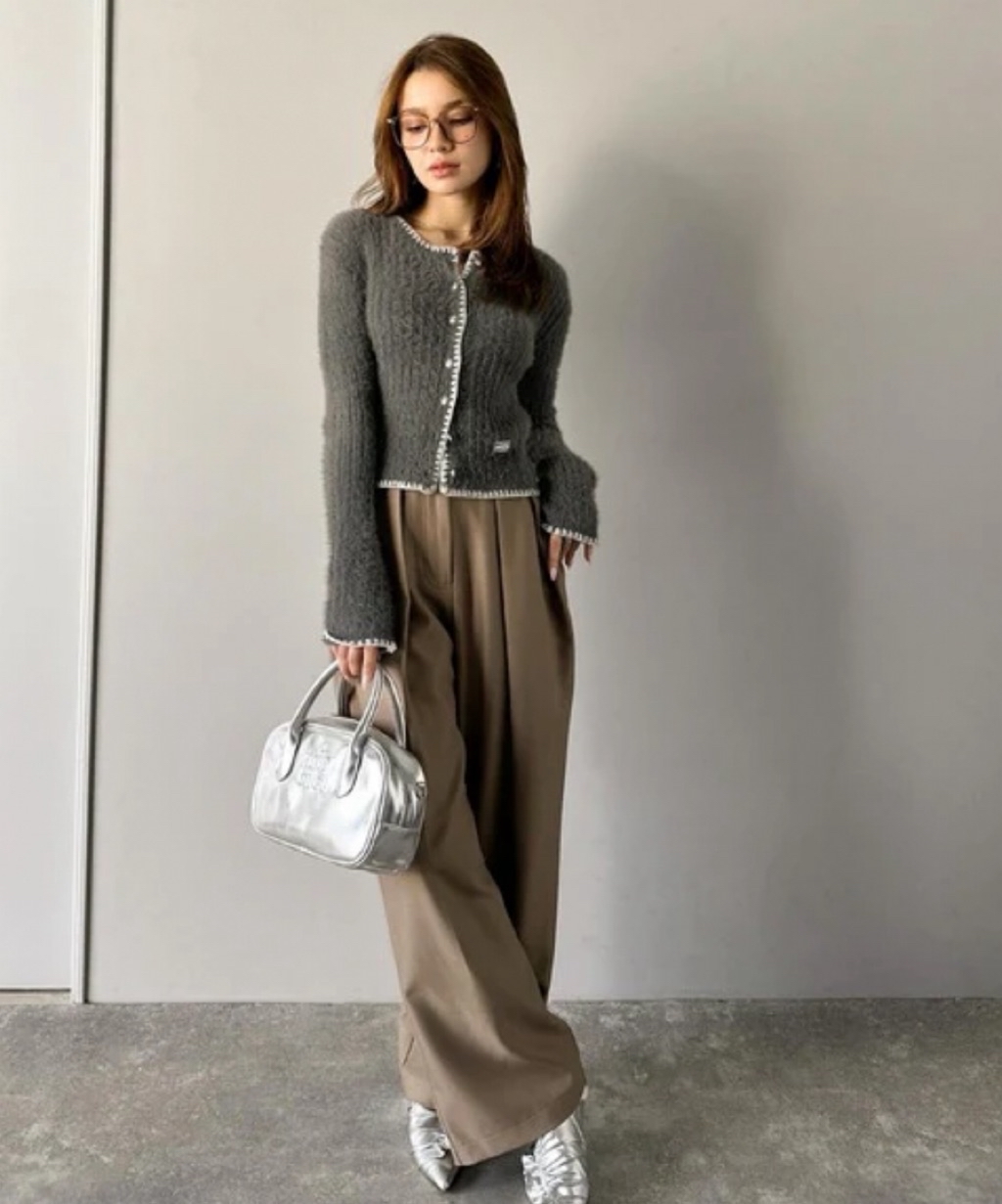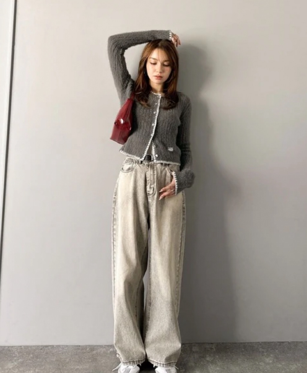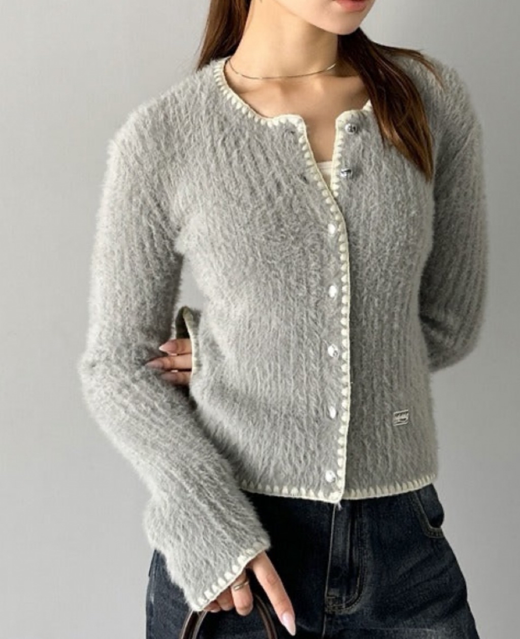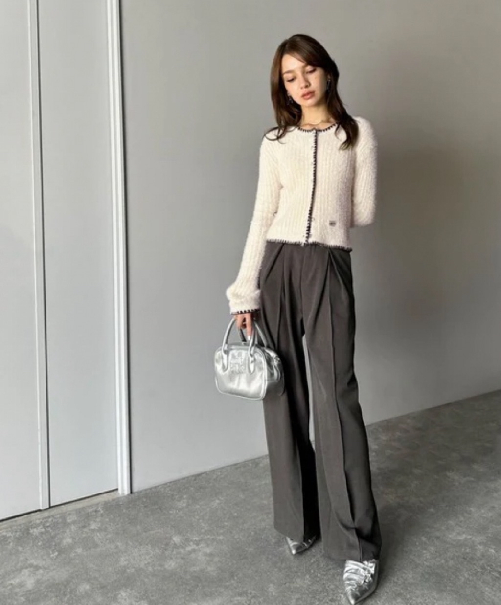 季節感たっぷりのシャギーリブ素材に配色ステッチで