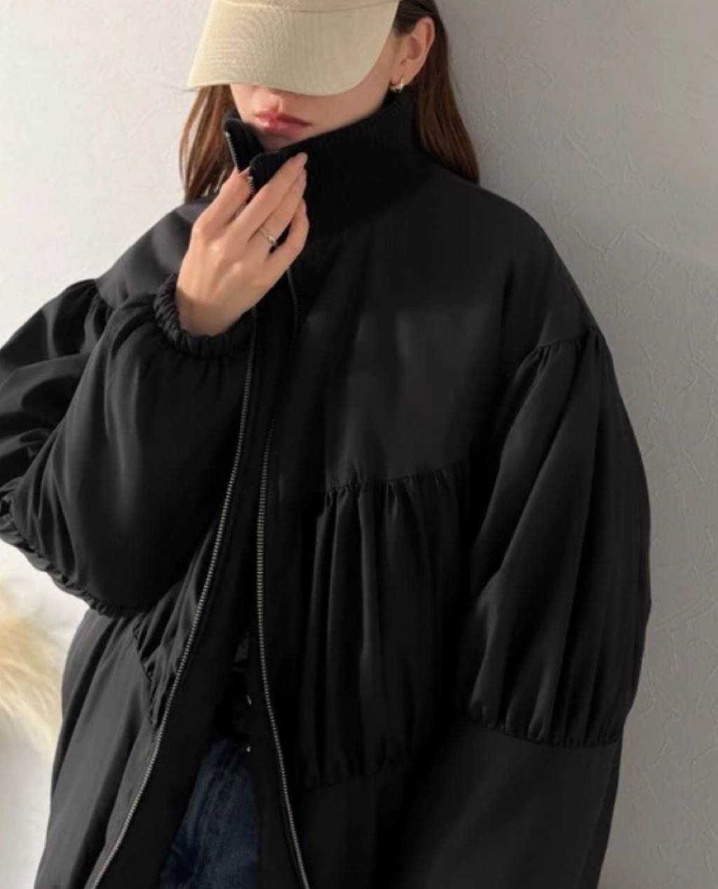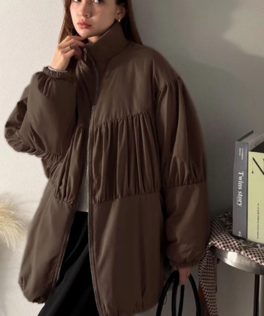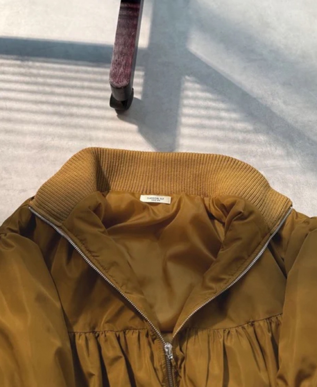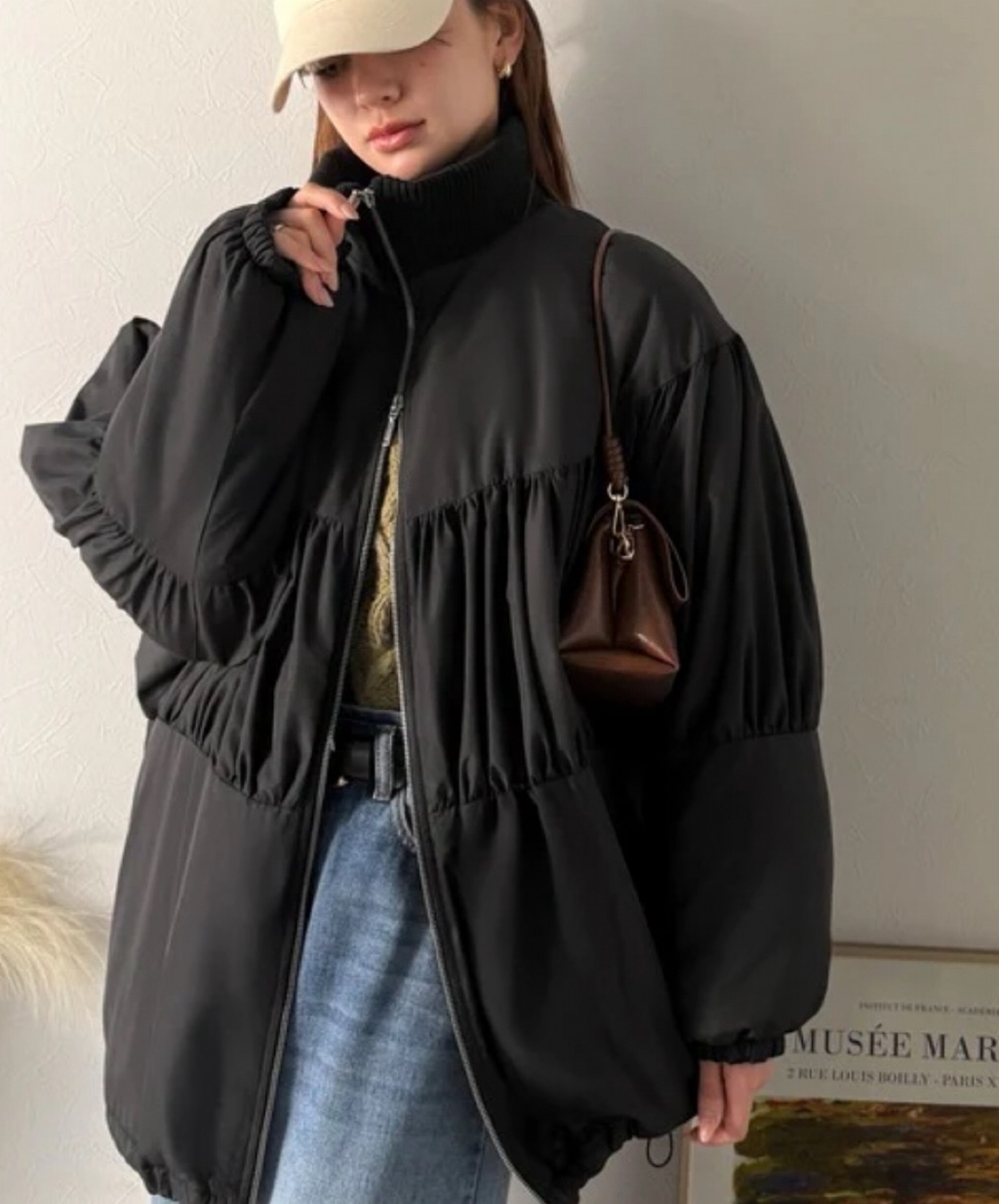 身頃と袖に施されたギャザーでふんわりとした立体感を演出するブルゾン。