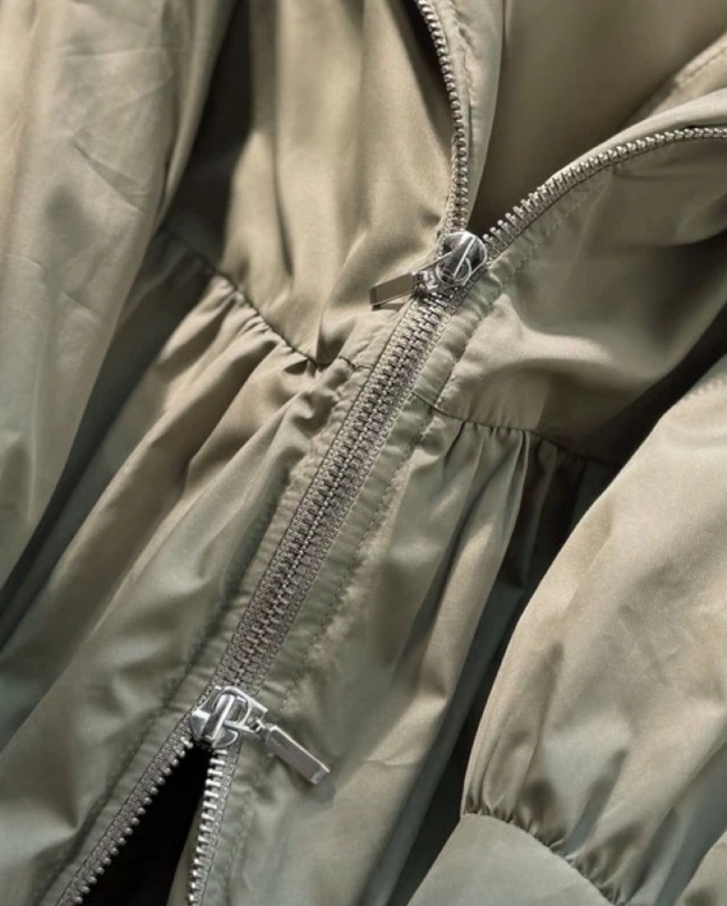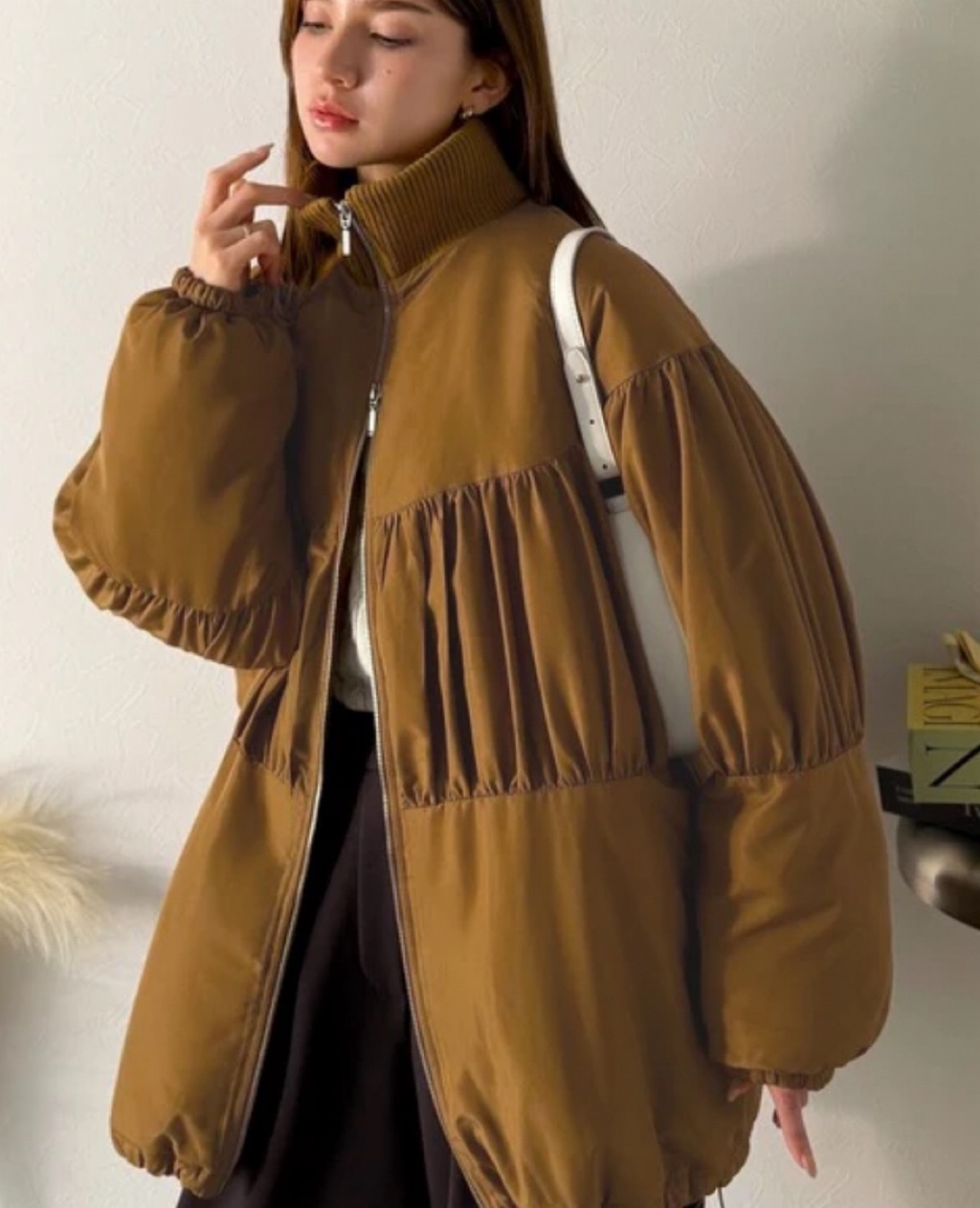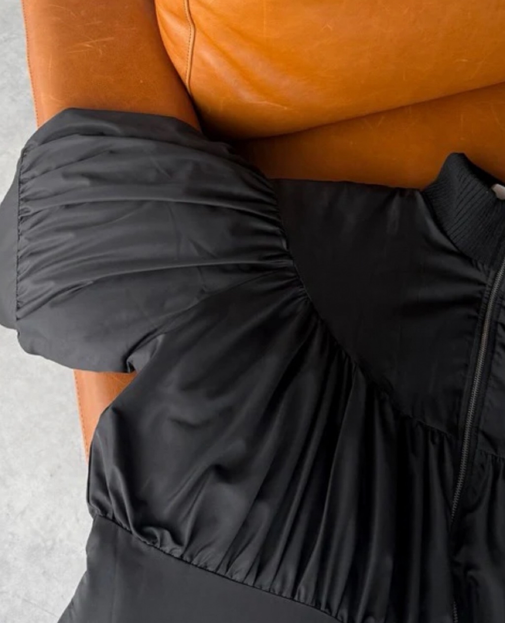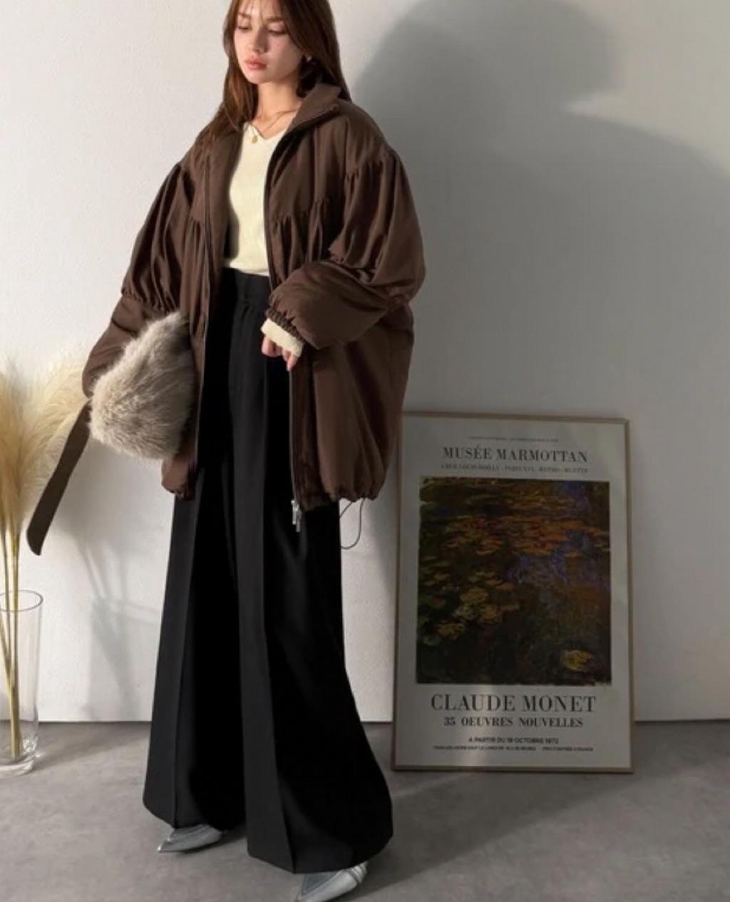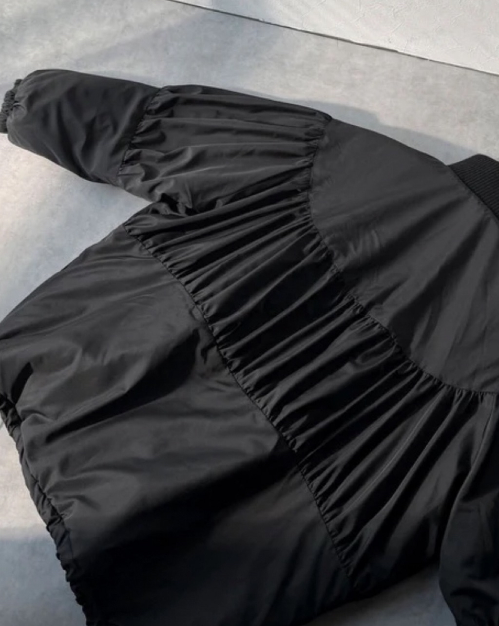 身頃と袖に施されたギャザーでふんわりとした立体感を演出するブルゾン。