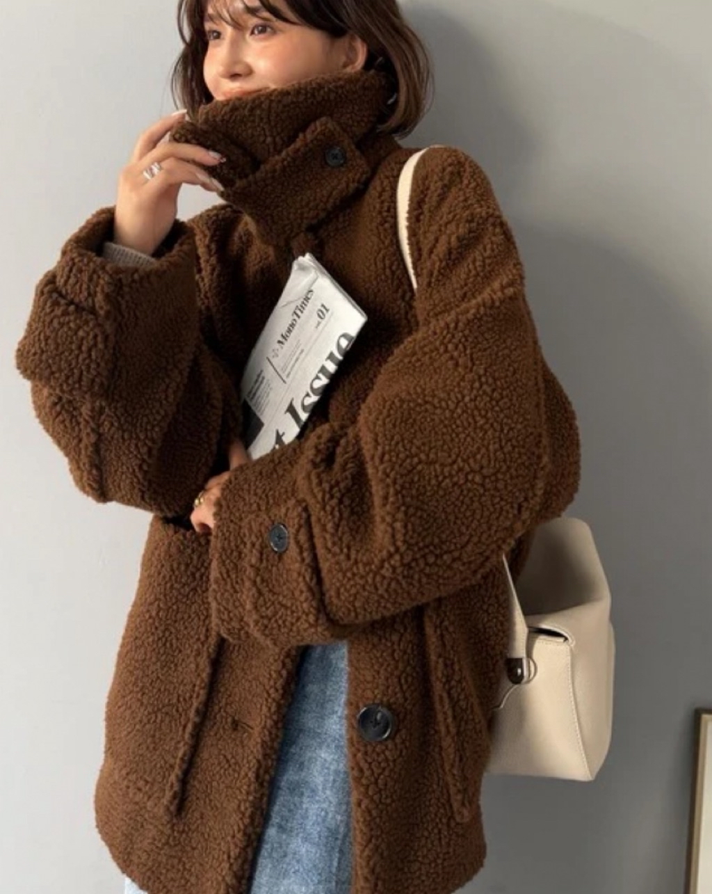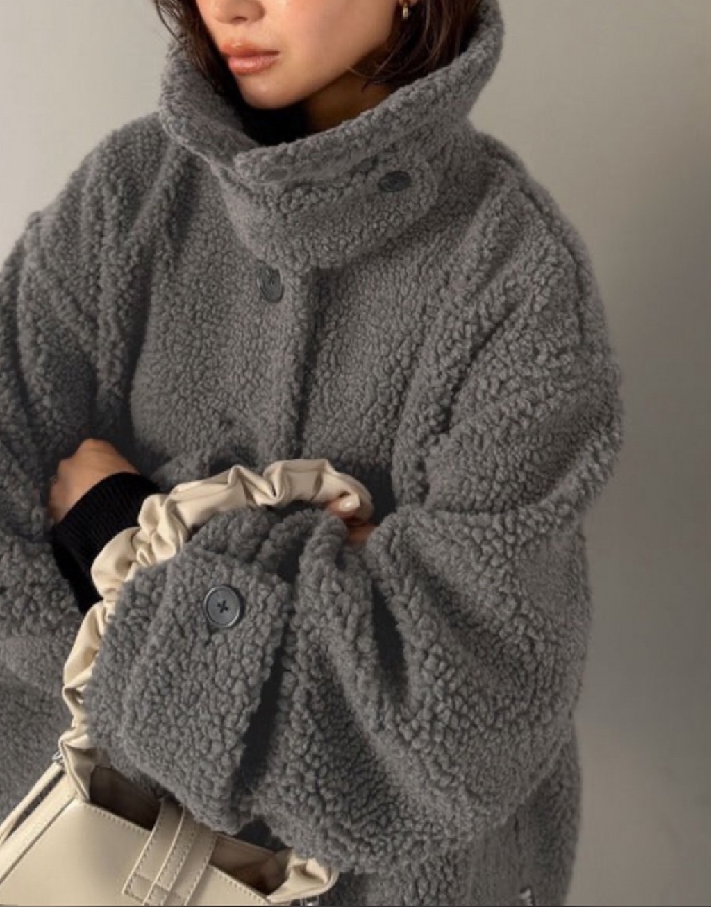 日本預購【Lottie🇯🇵】JAVA 纏う大人ボアが包み込む♪包覆保暖大顆粒厚手翻領外套(男女可穿)