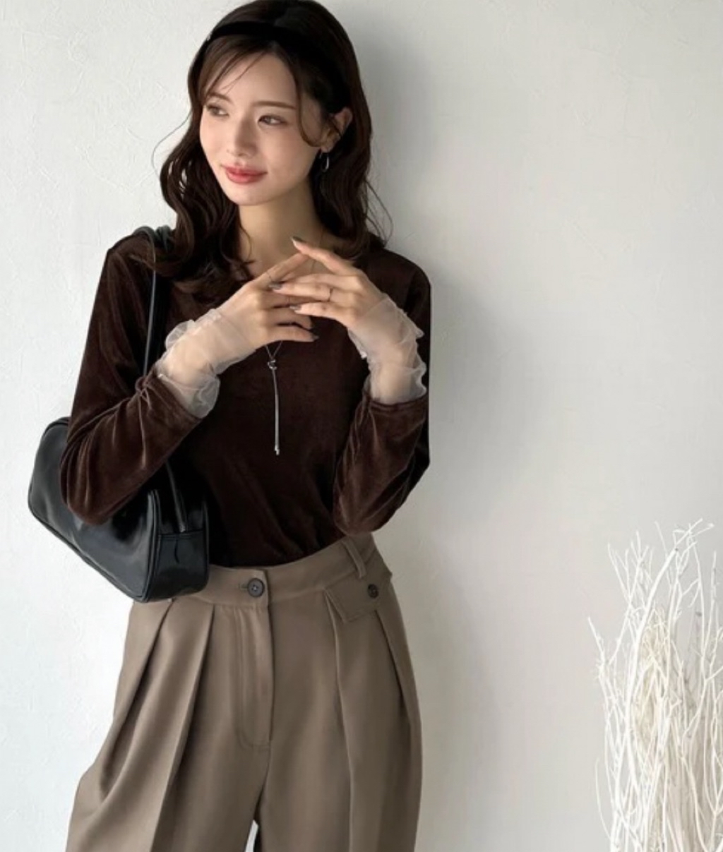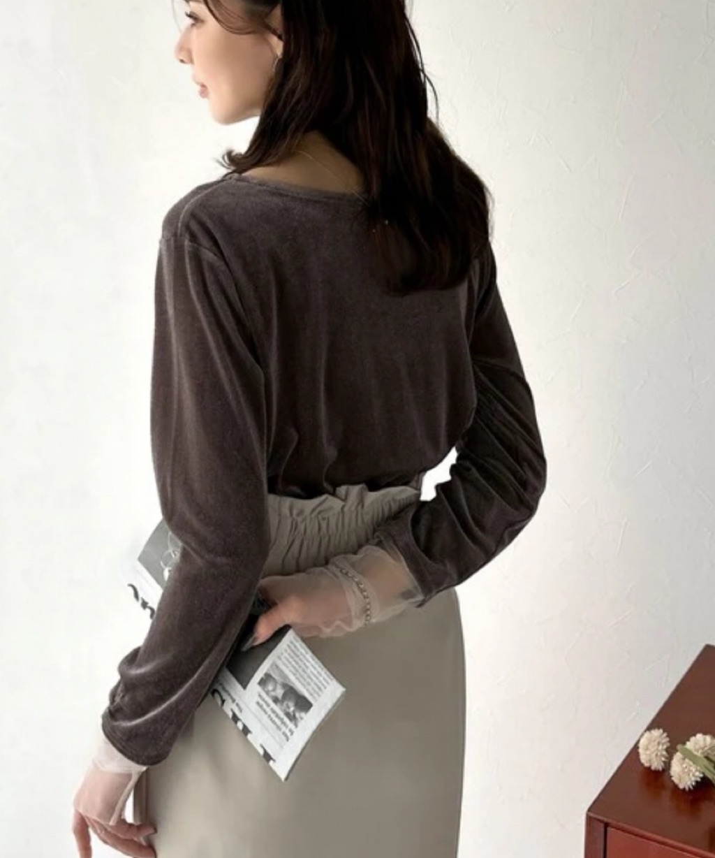 日本預購【Lottie🇯🇵】MILY BILET 異素材ミックスで魅せる◎袖口透膚責任 長袖上衣
